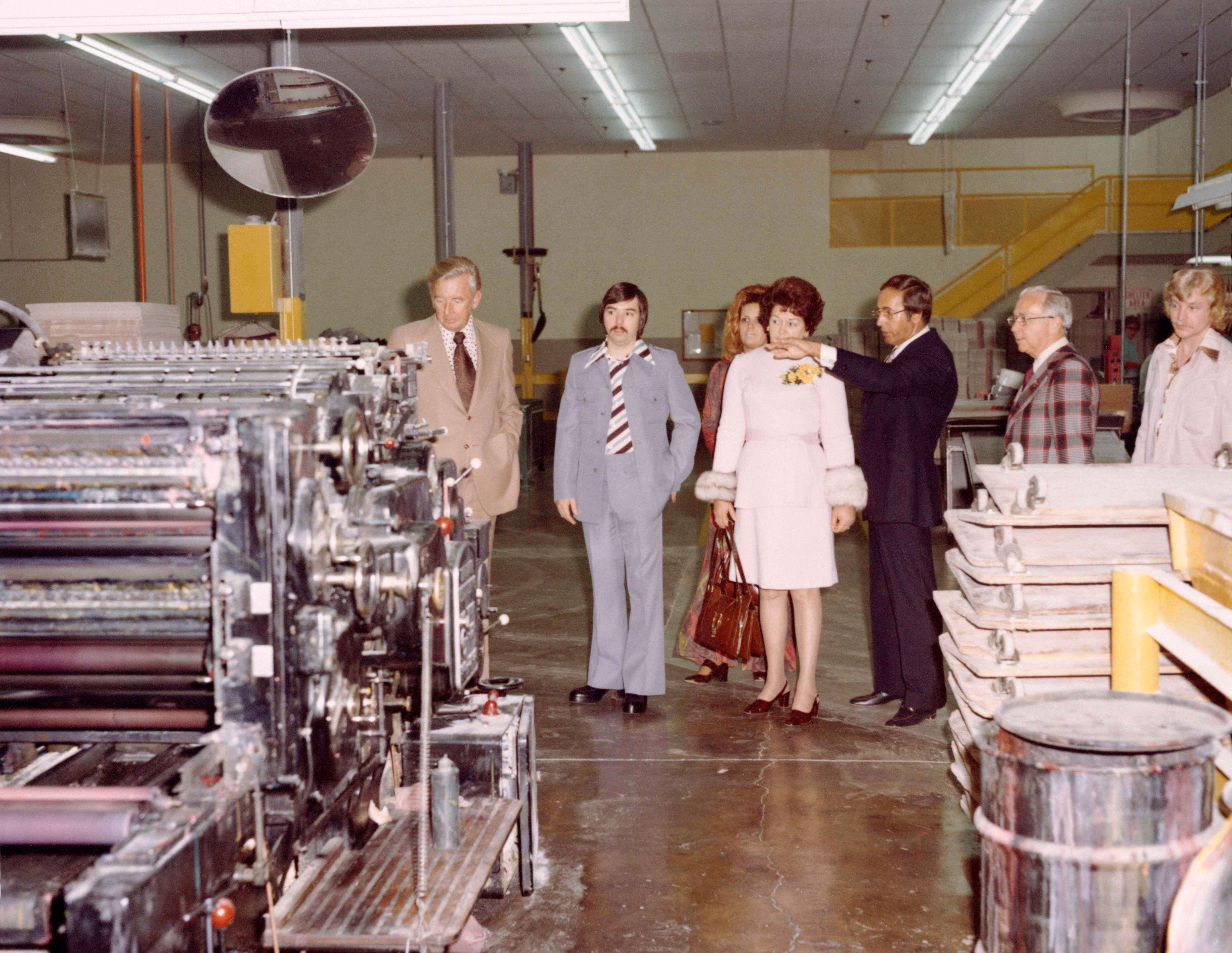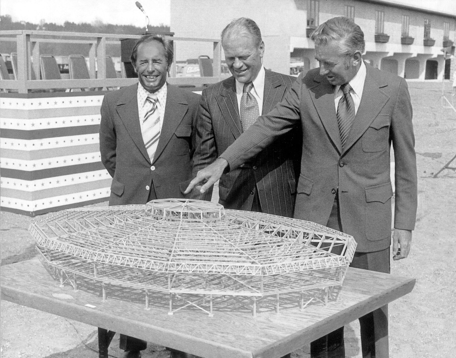 1971年理查·狄维士、杰·温安洛与国会议员杰拉尔德·福特观看自由企业中心模型