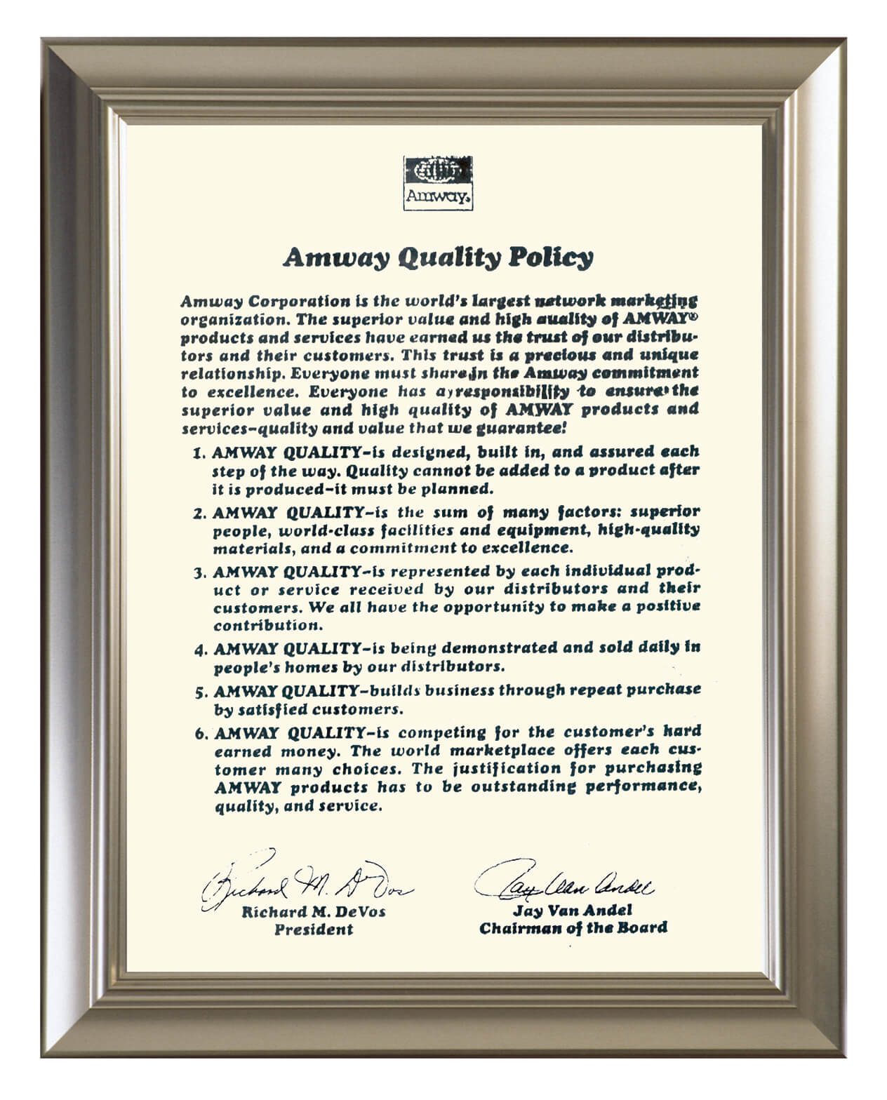 早在安利创办初期,两位创始人即签署《安利品质宣言》,向全球消费者承诺提供优质产品