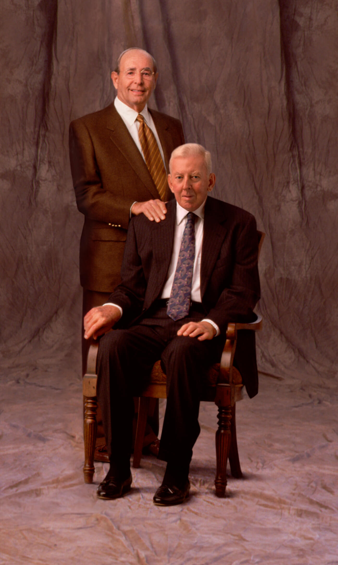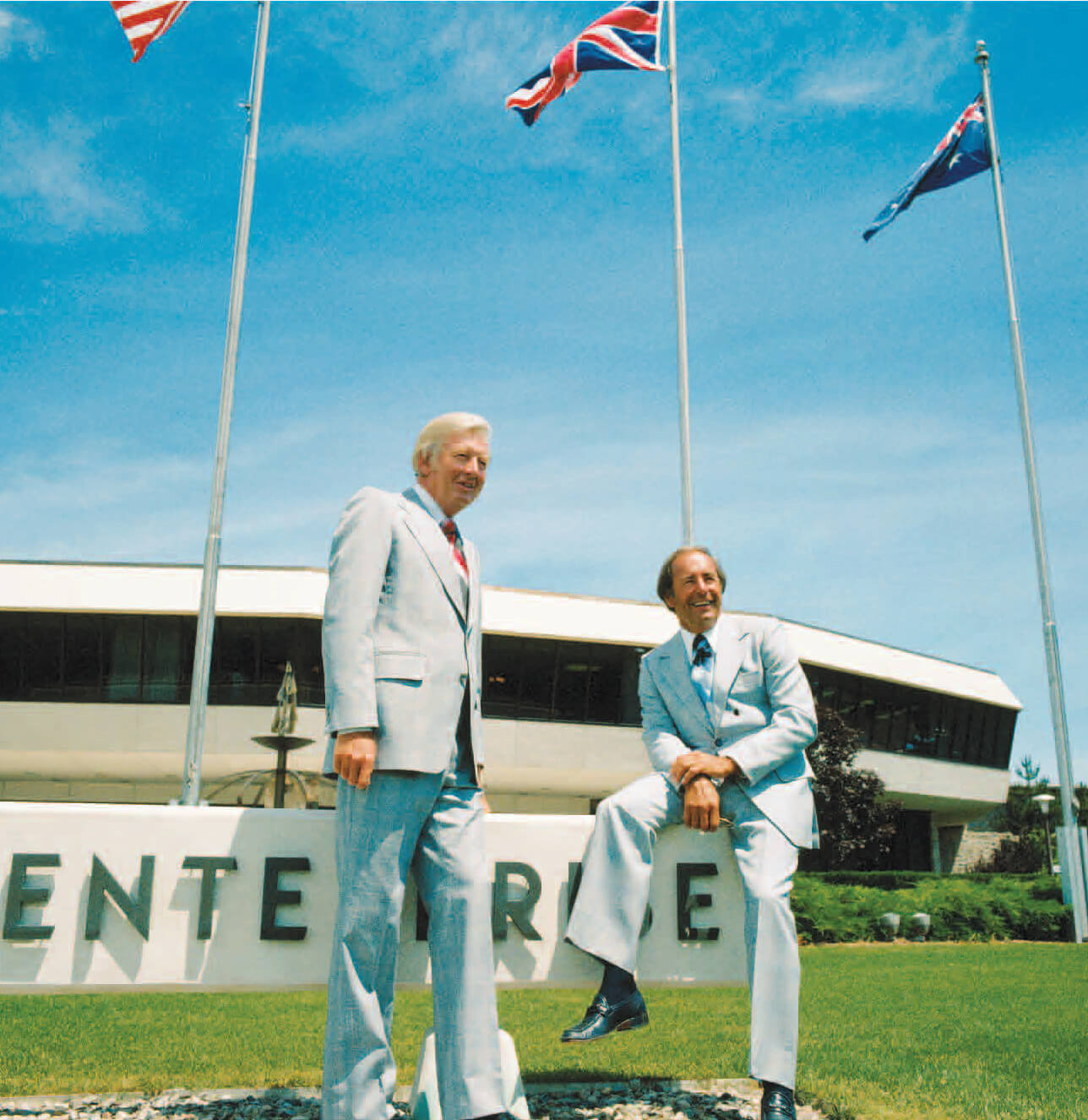 理查·狄维士和杰·温安洛在位于密歇根州亚达城的安利全球总部前合影