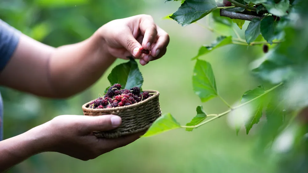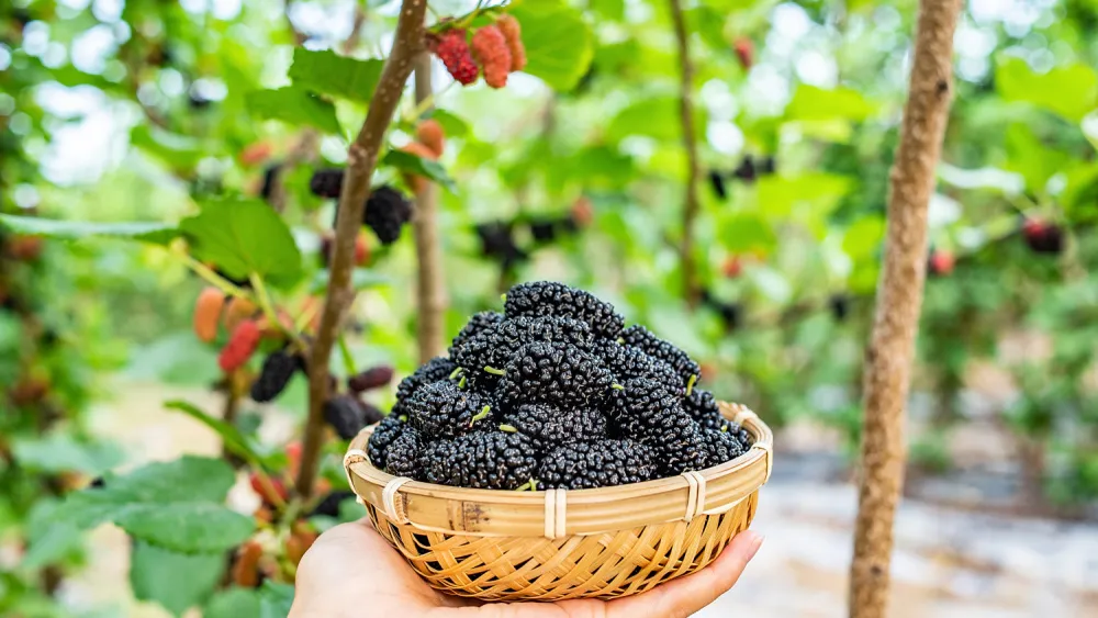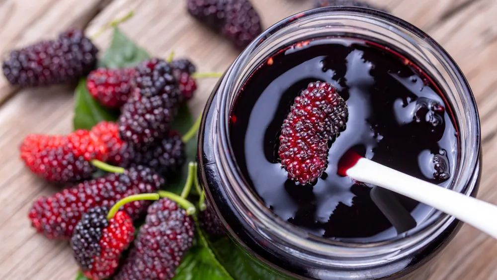 成熟后的桑葚酸甜可口、汁浓似蜜,