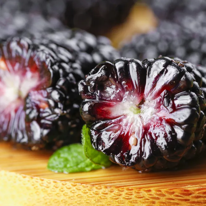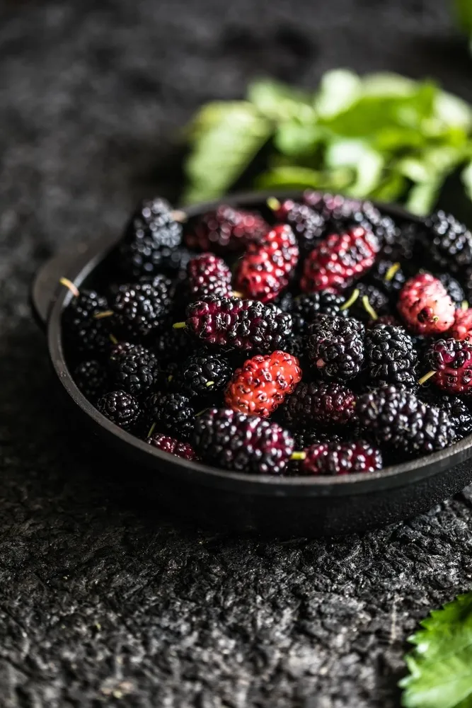 桑葚中含有丰富的膳食纤维,适当吃一些会有很好的饱腹感,对肠道健康有益。更难得的是,它的热量还很低,对于有体重管理需求的朋友来说非常友好。
