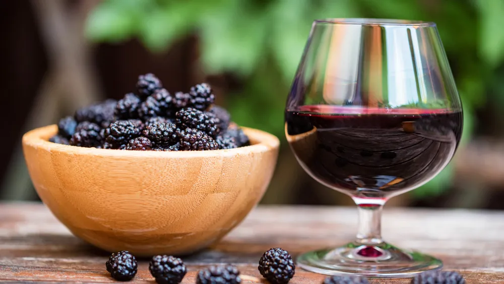 将桑葚用盐水浸泡10分钟,清水冲洗两遍,然后将清洗好的桑葚晾干。准备一个酒坛,按照一层桑葚一层冰糖的摆放顺序将坛子填满,最后倒入白酒,用塑料袋将坛口密封后存放在阴凉处。半个月后,就可以品尝到天下无双的桑葚酒了。味道甜香,具有滋补、养身、补血的功效,女孩子饮用,还可以改善手脚冰凉的情况。