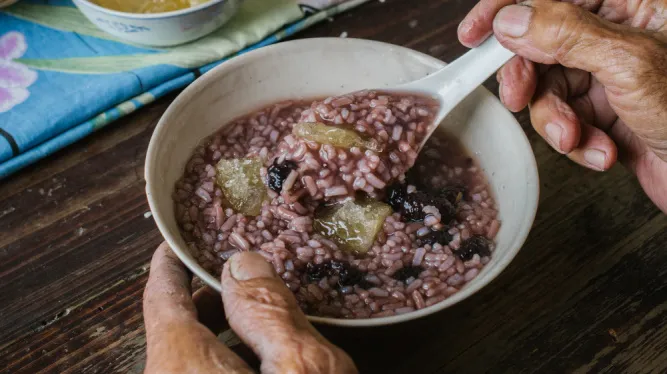 先烧一锅水,等水开后放入洗净的大米,开大火熬煮20分钟。然后将准备好的桑葚和冰糖放入锅中,小火再煮10分钟左右,一碗香喷喷的桑葚粥便出锅了。作为滋补圣品,桑葚粥有着滋补肝肾、养血明目的功效,适合出现头晕眼花、须发早白等情况的中老年人。