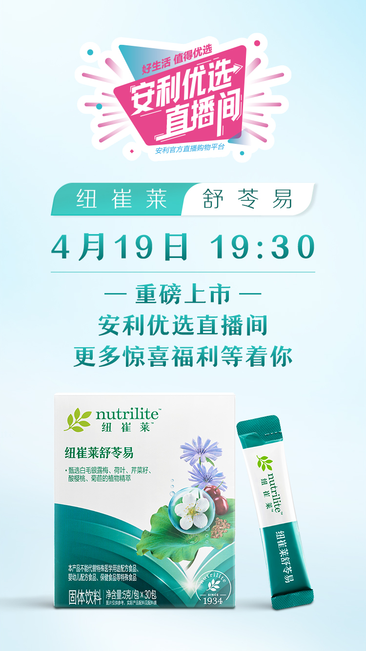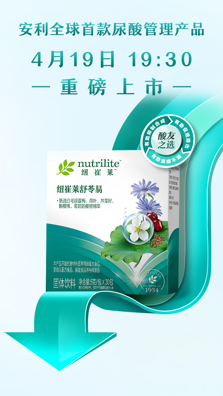 安利全球首款尿酸管理产品「纽崔莱舒苓易」4月19日19:30重磅上市