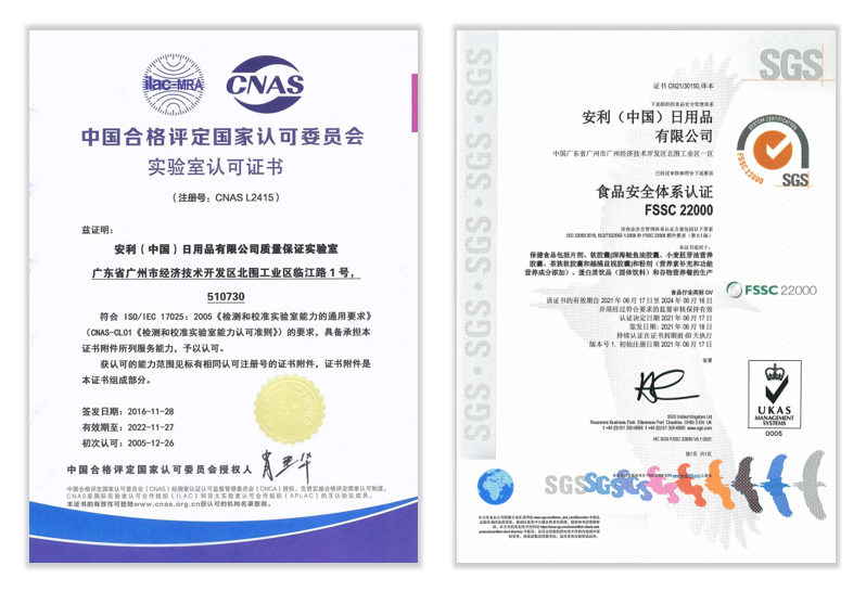 质量保证实验室早在2005年就通过中国合格评定国家认可委员会(CNAS)的认可评审,成为直销行业内最早获得这一认证的实验室,这表明实验室具备按相应认可准则开展检测的技术能力,并且有资格参与国际间合格评定机构认可双边、多边合作交流。