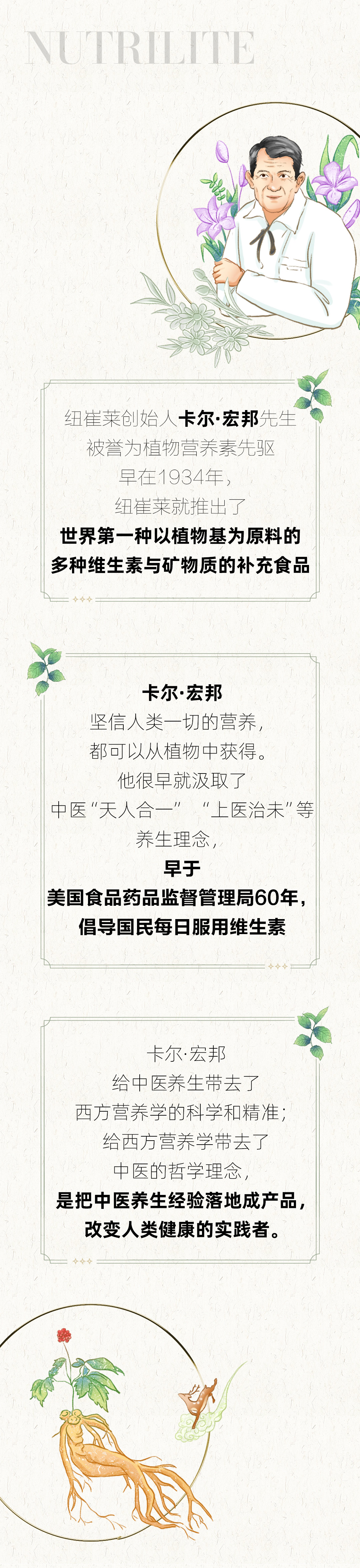 纽崔莱创始人卡尔·宏邦先生被誉为植物营养素先驱