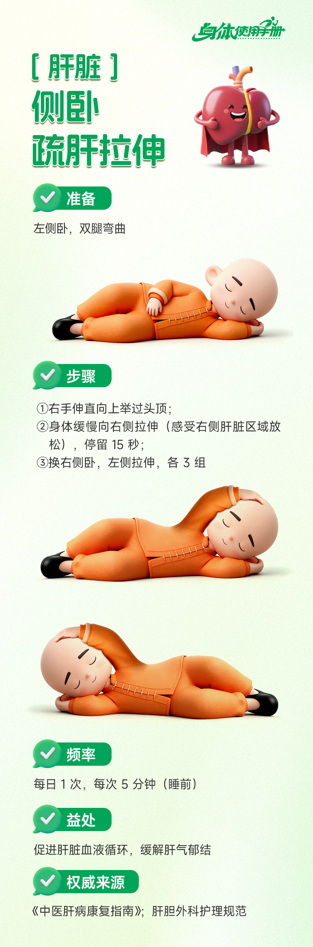 睡前试试侧卧拉伸!左右各 15 秒,疏肝不憋闷,一起放松超棒~
