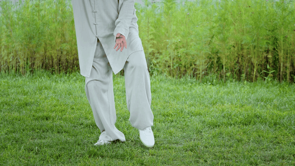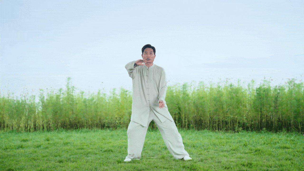 动作介绍:开步是太极拳中的基本步法,指的是向身体左侧或右侧横开一步。开步时,脚跟先落地,然后脚掌、脚尖逐渐落实。插步是太极拳中的进攻防守步法,指的是一脚插到另一脚后侧。插步时脚尖先落地,然后脚掌、脚跟逐渐落实。两臂螺旋缠丝,可以有效拉开胸腹,按摩刺激脾胃功能,促消化,强脾胃。