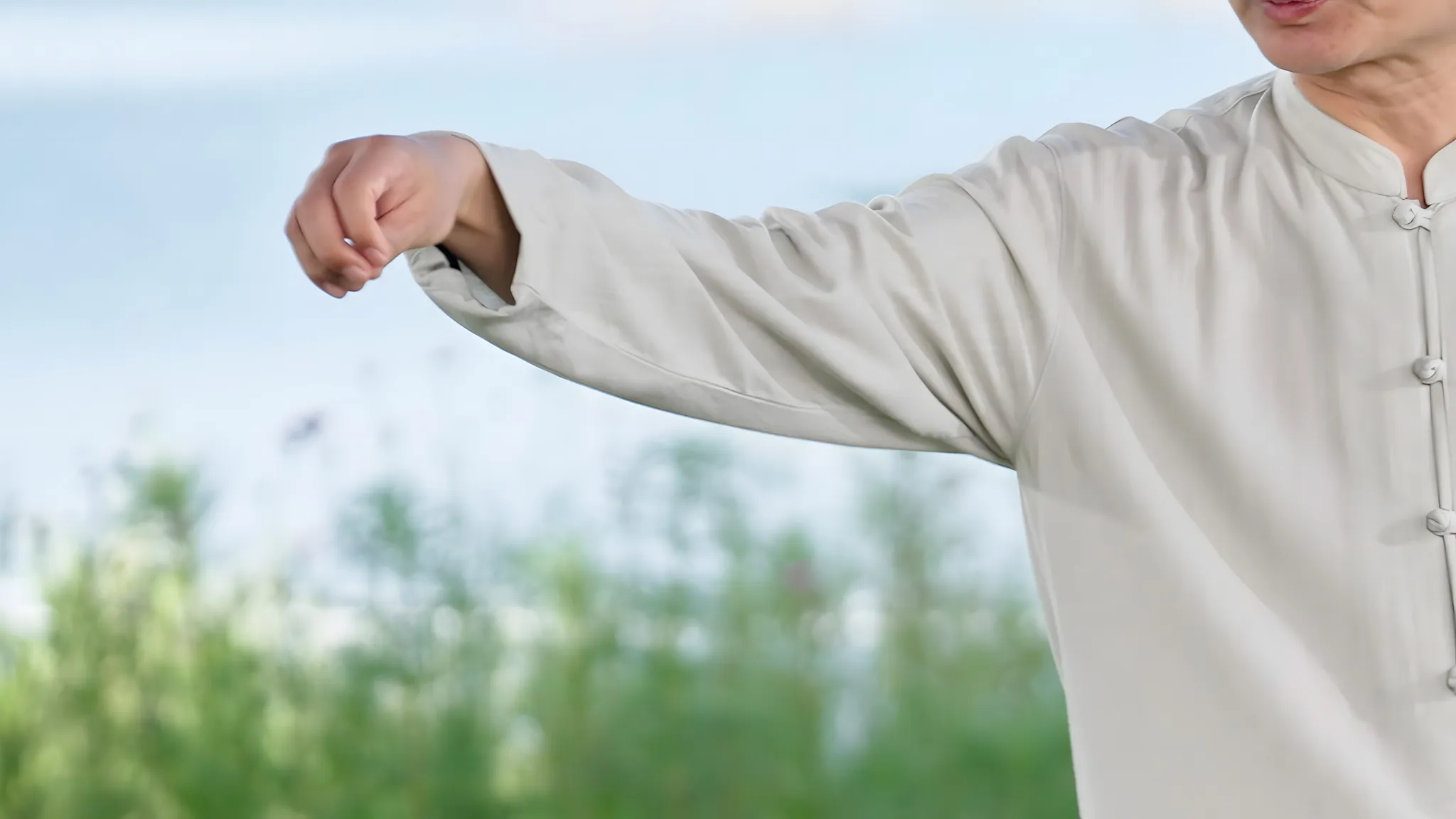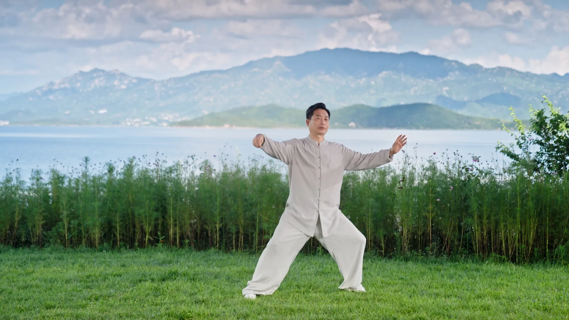 动作介绍:第四十七式【单鞭】·长夏养脾。动作分解:勾手在陈式太极拳中属于提抓法的应用,具体做法是手腕下折,五指并拢下垂。动作要点:定势时两臂开展,可同时拉伸两侧肝胆经,增强脾胃功能,健脾和胃。提供跟练视频包括口令跟练和背部跟练。