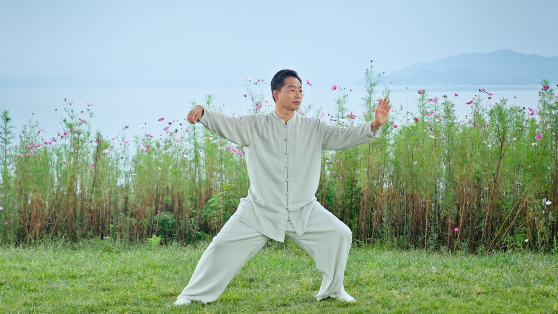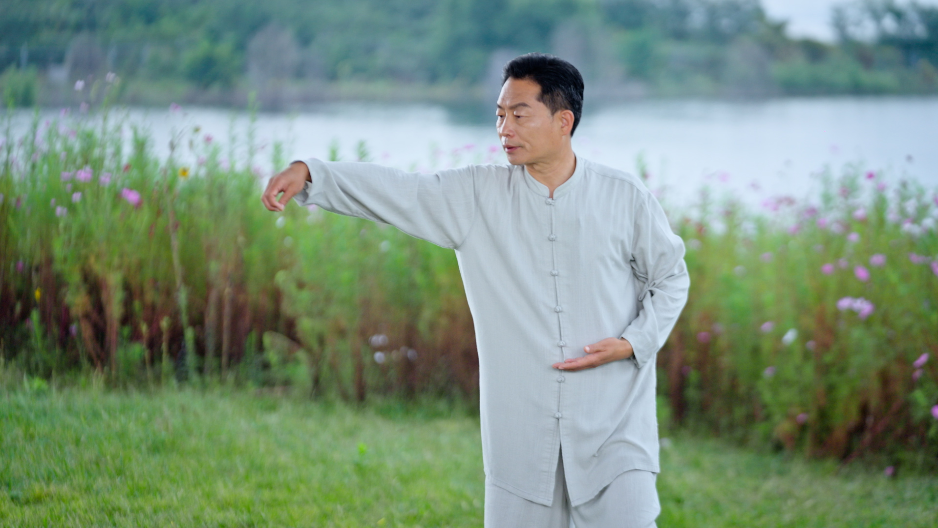 2、定势逆缠开臂,可以摩擦腋窝,激活心经,调节心气。