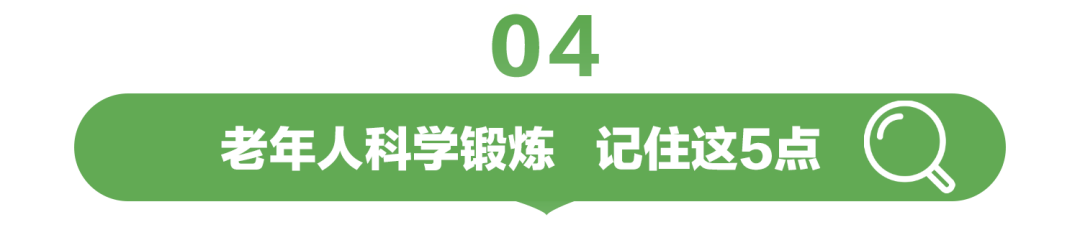 老年人进行运动时,科学合理的方式是保障健康的关键,记住以下5点,能让运动更安全、更有效。
