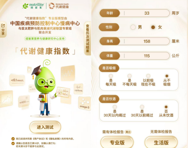 范博士进一步分享了由安利纽崔莱支持、中国疾病预防控制中心专家组联合发布的 “代谢健康指数”。该指数依托18万 + 队列数据,纳入7项核心生化指标及4项关联指标,构建科学评估体系,首创13种分型精准识别代谢异常特征。针对不同分型匹配个性化膳食建议,助力营养知识落地及慢病防控关口前移。分享过程中,会场掀起热烈的扫码热潮——参会嘉宾纷纷开始体验代谢健康指数的测评,不时传来赞叹之声:“这个分型很精准”“能和同龄人对比太直观了”……,展现了大家对代谢健康管理工具的迫切期盼。