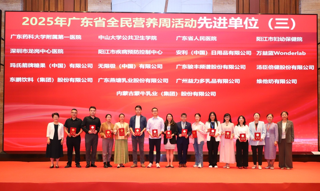 会上也再传喜讯,公司凭借在营养周活动中开展的系列营养科普、健康互动等精彩实践,获大会授予“2025年广东省全民营养周活动先进单位”称号。这一荣誉是对公司深耕营养健康领域、助力公众健康素养提升的肯定,也与年会主题深度契合。