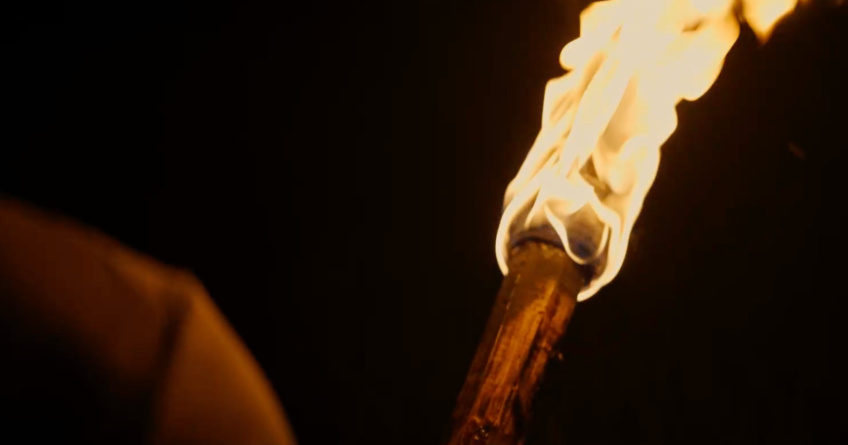 突然,一支暗夜中燃烧的火把窜入脑海。然后和许芝翔导演一起讨论项目方案。大家彼此贡献灵感,形成共识,最终形成以下文字方案的第一段: