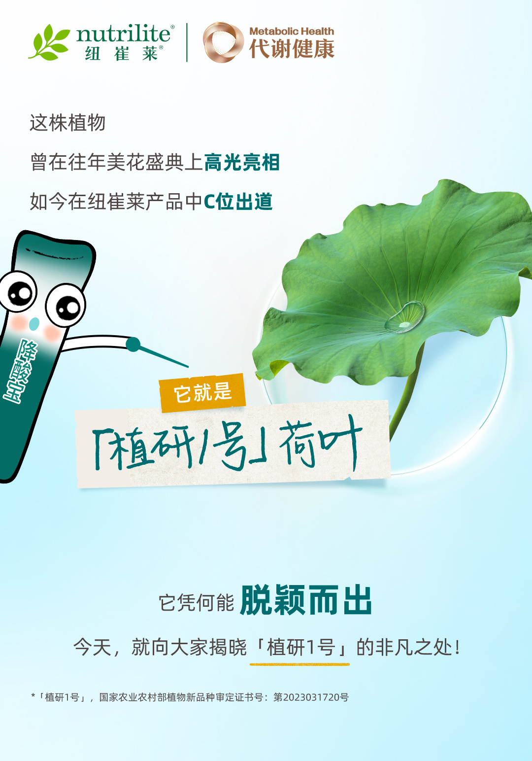 往年的美花盛典上,植研一号荷叶的诞生让全场沸腾。如今,它终于登上C位,在纽崔莱产品中出道。您知道吗?我们的科研人员花费了八年的心血,从三百余种莲花中优选优育出这位荷花学霸。它的荷叶碱含量高于市面常见品种,在促进尿酸排出上有奇效。从诞生到登上C位出道,这位学霸可谓没少下苦功。下集带您看看它如何在种植基地再创新高度。