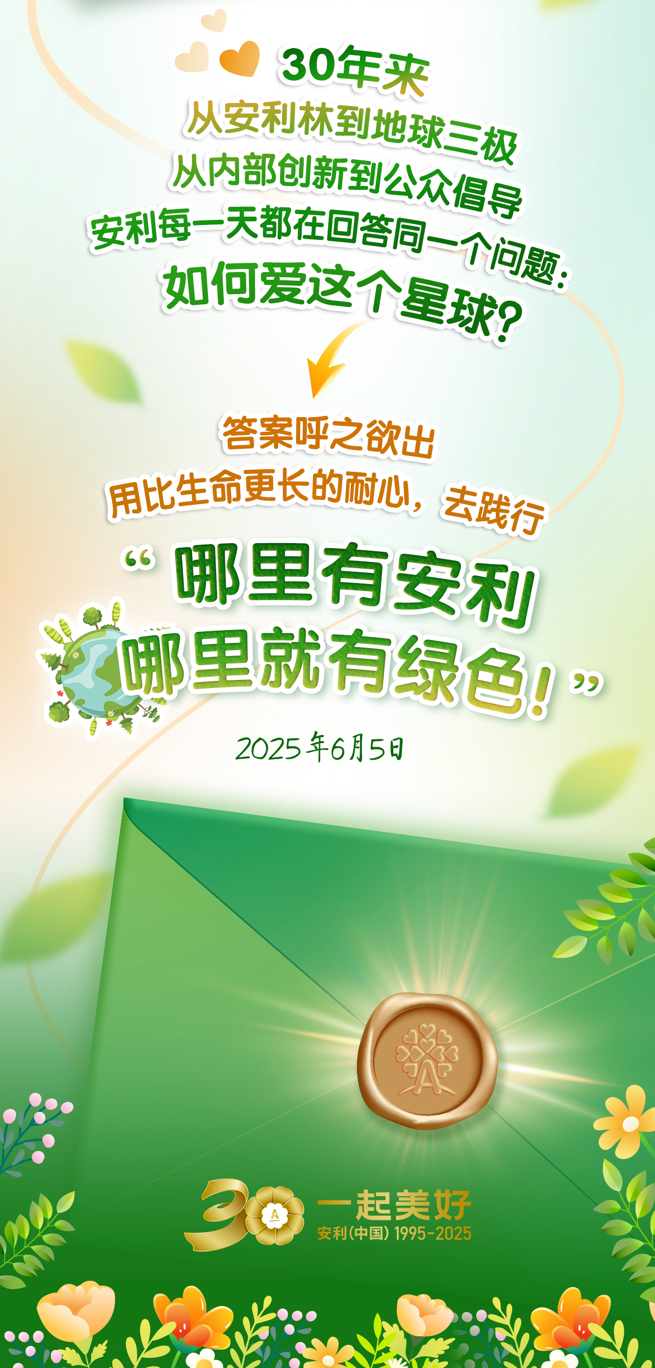 用30年,安利给环境写了一封绿色情书。1995年,从安利踏上中国这片热土起,就一直践行着给地球的环保承诺。2002年,从南北极科考船到珠峰,安利以践行绿色的信念向世界宣告环保没有极限。2007年,安利把环保融入企业文化,让每位员工从参与者变为倡导者。2009年起,安利让环保变成一场全民运动,800万人参与环保嘉年华,印证着从我到我们的环保恒心。我们该如何爱这个星球?安利用行动交出答案,用比生命更长的誓言去践行,哪里有安利,哪里就有绿色。
