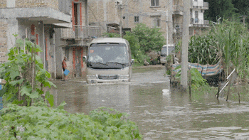 去往桂平联堡村(本次物资发放点之一)的路并不好走,从市中心出发,路上城市的痕迹逐渐淡化,取而代之的是蜿蜒的山路和低矮的村屋。由于正值雨季,雨水冲刷下的滑坡以及积水形成的内涝让行车的难度大大提升。