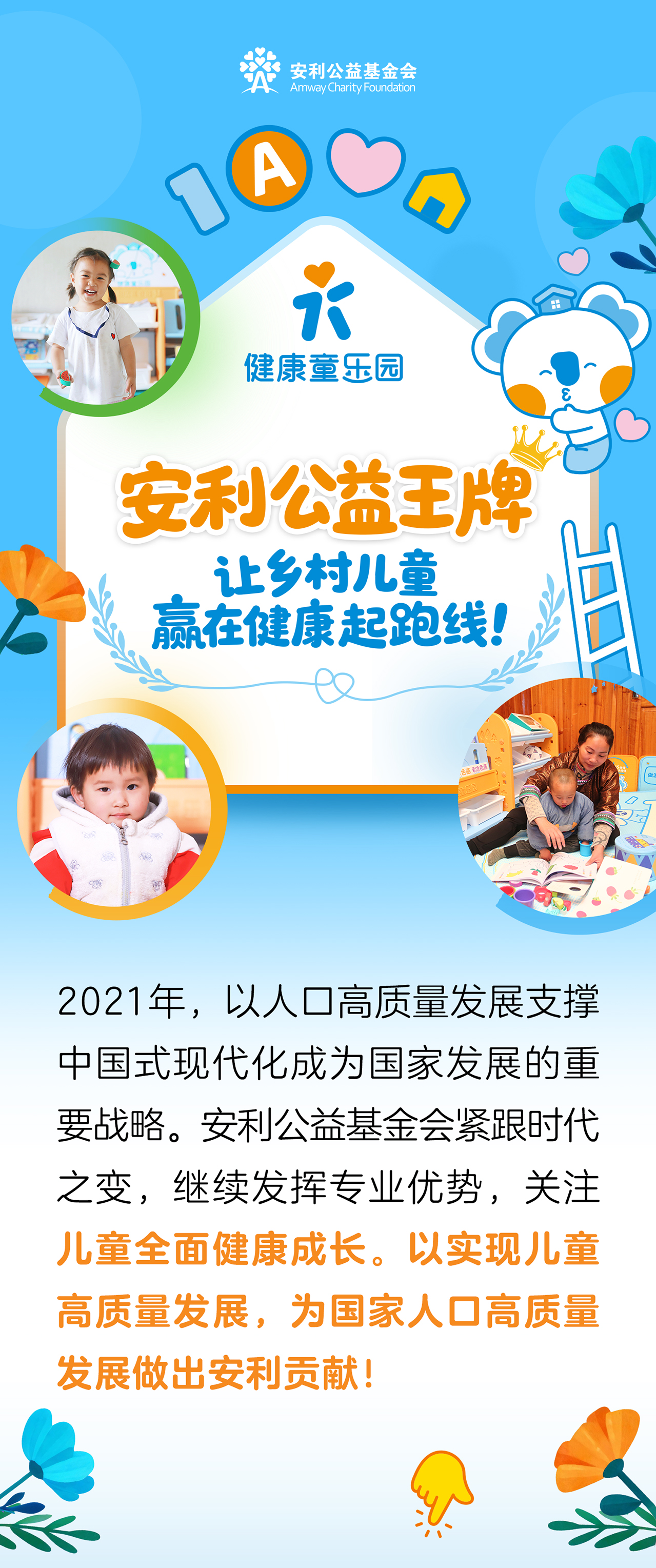 2021年,以人口高质量发展支撑中国式现代化成为国家发展的重要战略。安利公益基金会紧跟时代之变,继续发挥专业优势,关注儿童全面健康成长。以实现儿童高质量发展,为国家人口高质量发展做出安利贡献!