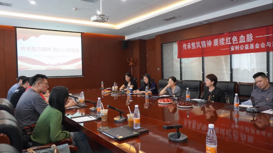 为深入贯彻落实中央八项规定精神,强化纪律作风建设,一体推进“学查改”融入日常工作,2025年6月26日下午,安利东方广场办公室与安利公益基金会联合党支部组织开展了《传承整风精神 践行八项规定——以铁的纪律和过硬作风推动事业发展》专题党课学习。本次党课由基金会理事长兼支部书记彭翔同志主讲,基金会全体党员及从业人员参加。