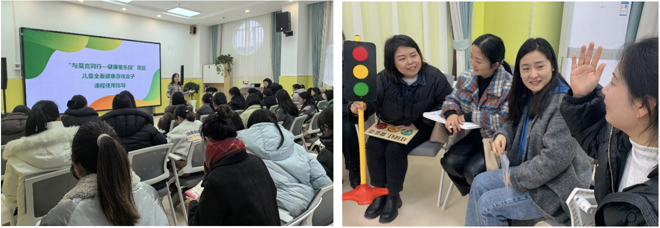 12月11日,健康童乐园项目培训落地贵州省毕节金沙县并开展教师培训,金沙县39位老师参加培训。培训讲师张雪从课程材料搭配,课程使用方式及使用注意事项等方面做了详细地拆分。通过《营救鸡蛋大作战》主题游戏以及《彩色鸡蛋配对》主题游戏的活动示范课,帮助参训老师更好的理解项目。培训着重讲解了教具的使用和摆放,解决当地老师不会使用玩教具及其摆放的问题。