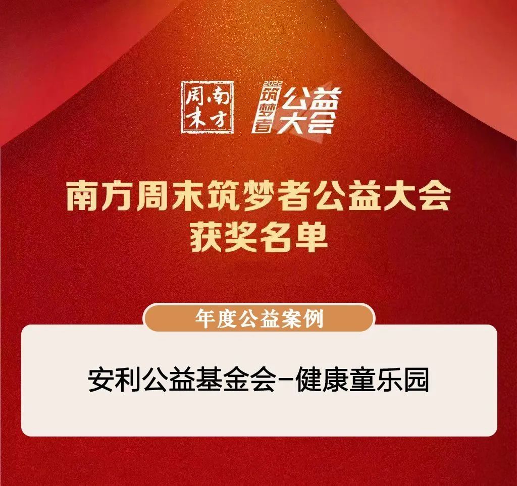 2021年,安利公益基金会充分利用在儿童营养、教育领域积累的优势,从营养扶贫战略到支持儿童全面健康战略升级,联合中国关心下一代工作委员会健康体育发展中心、安利公益基金会、深圳壹基金公益基金会以及腾讯公益慈善基金会共同发起“健康童乐园”项目,给中国的乡村儿童一个充满乐趣、关爱和健康的童年。截至目前,项目覆盖了贵州、广东、新疆3省区10县10,000户家庭。此次,“健康童乐园”项目凭借其创新性、可持续性,荣获《南方周末》 “年度创新案例”奖项,这代表了社会各界对该项目的认可。同时,项目发起方的三家基金会全部荣登基金会十强榜单,这也印证了“健康童乐园”项目的强大基因和长远前景。