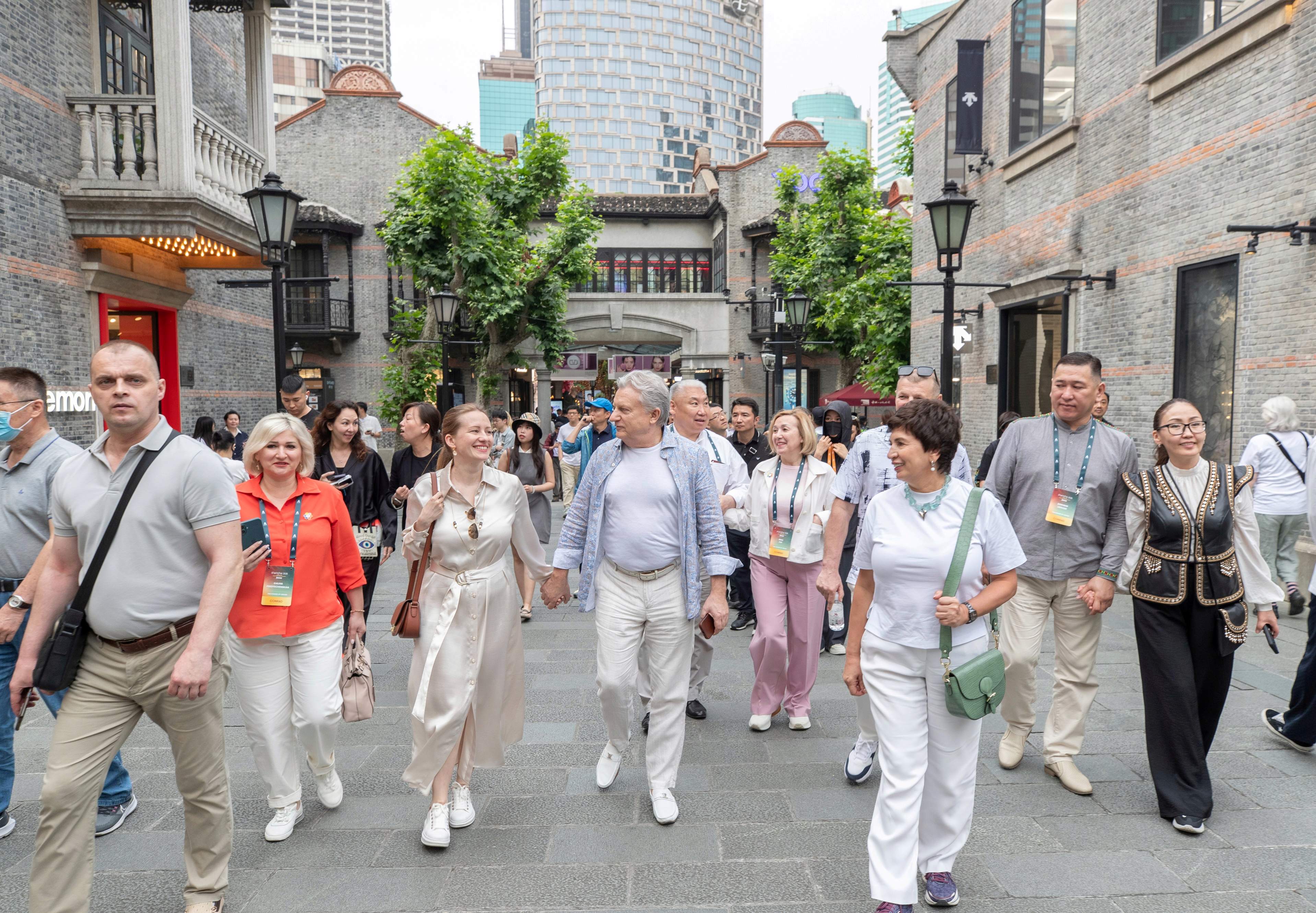 波兹德尼亚科夫夫妇一行游览上海新天地