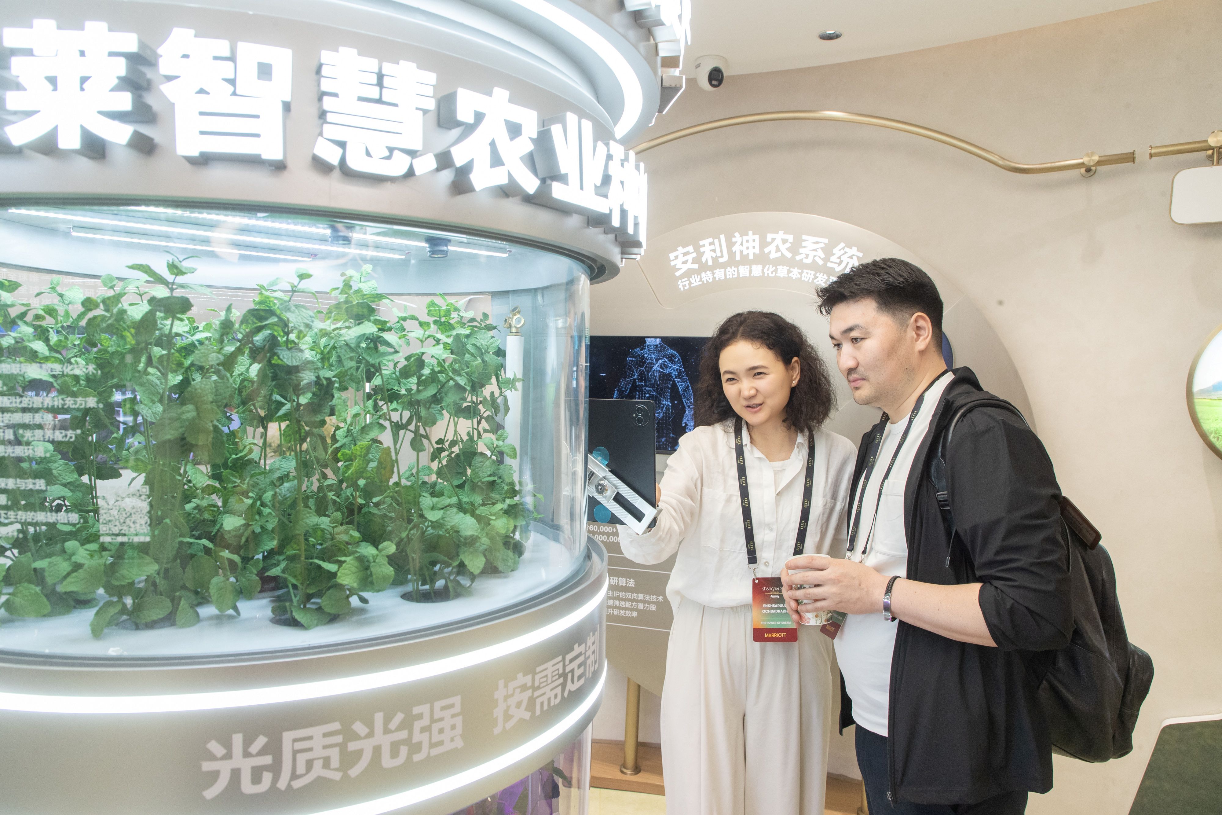 安利上海旗舰体验馆,今年二月刚刚完成改造,升级为“美好生活共创空间”和“健康生活方式推广中心”,萨沙卡夫妇在这里学习了解菊花、荷花、铁皮石斛等植物营养的奥秘,体验中医面诊检测,叹服中医传统养生智慧的博大精深。