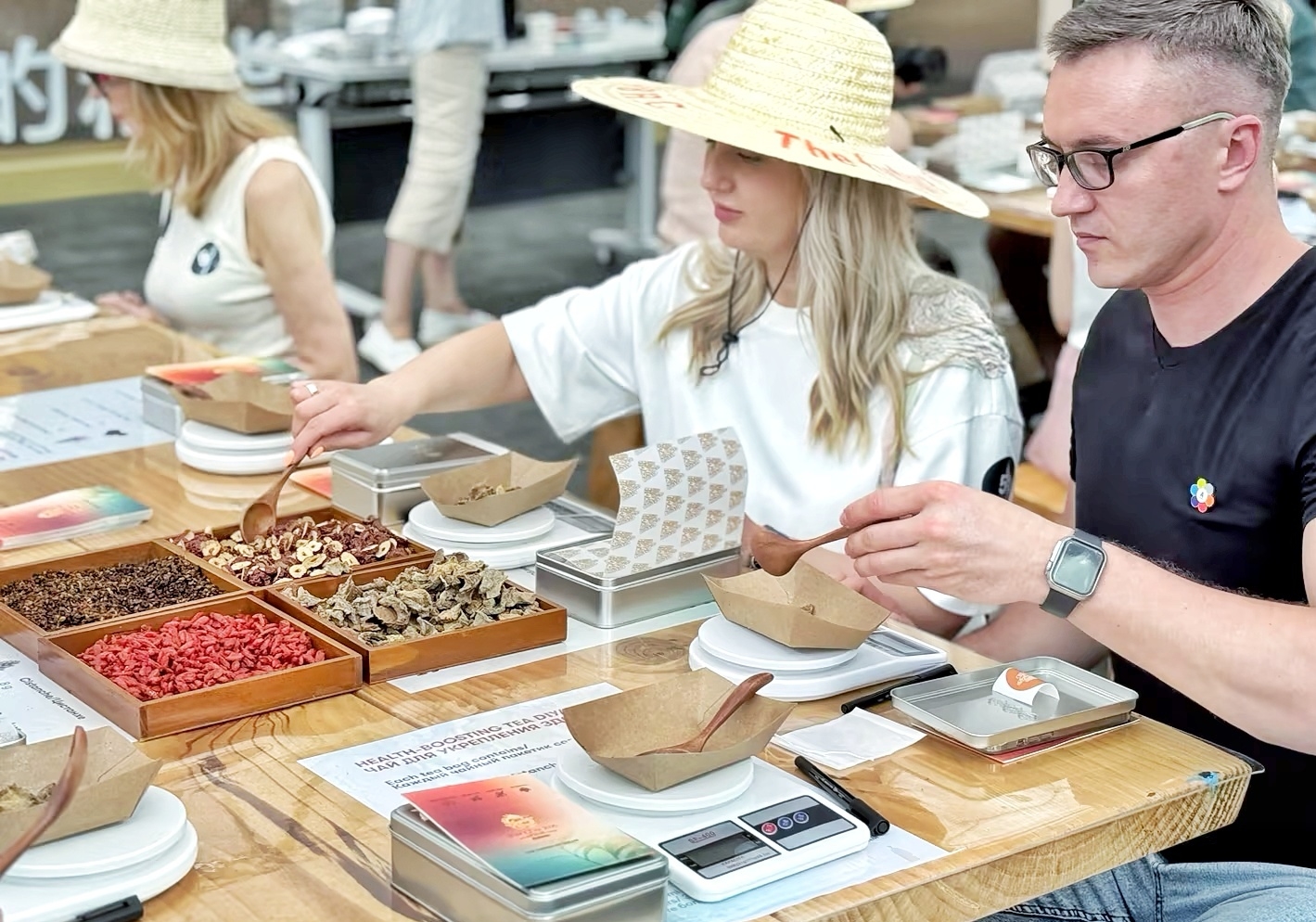 科什基尼夫妇在安利(中国)植物研发中心制作中草药茶包