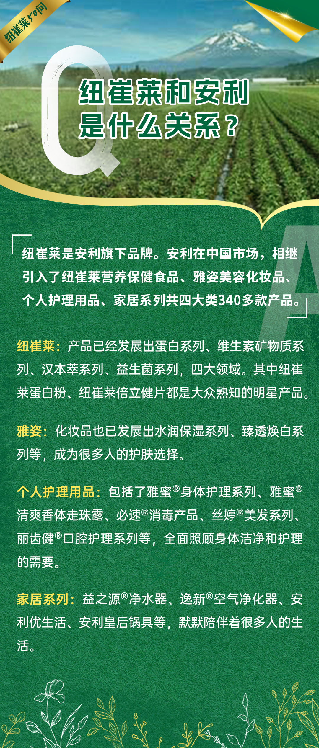 一句话小结:纽崔莱是安利旗下品牌。安利在中国市场,相继引入了纽崔莱营养保健食品、雅姿美容化妆品、个人护理用品、家居系列共四大类340多款产品。