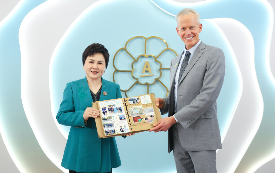 11月21日下午,在安利员工大会上,一份特别的礼物由安利(中国)总裁余放女士亲手交到了尼尔森先生手上,这是一本由30位安利员工纯手工制作的“美好生活纪念册”。