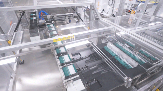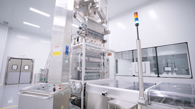 混合好的原料会来到充填车间,在这里,十列充填机会按设定的数量对我进行自动充填,单条充填精度高达±0.02克,速度达400条/分钟,最高日产量可高达1.6万盒。