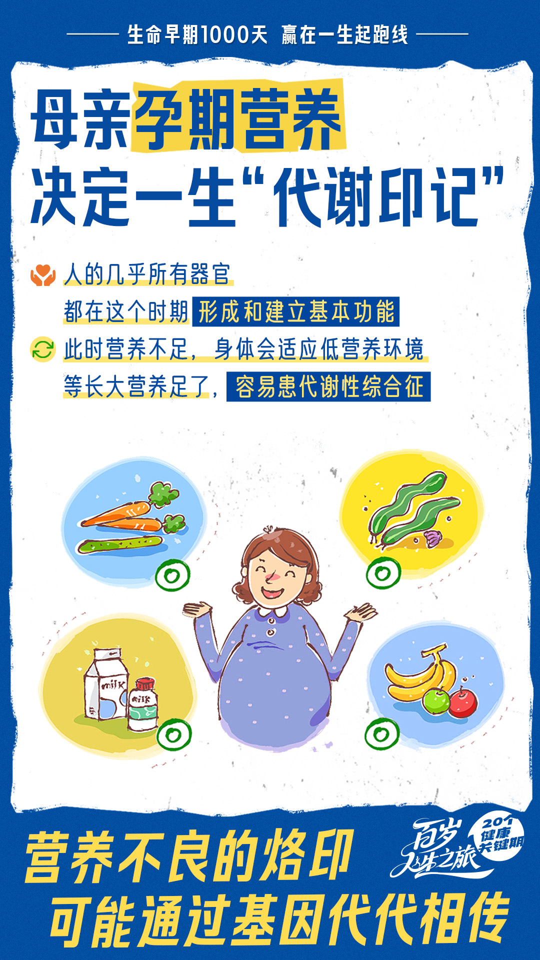 4 母体营养不足或过剩均会形成“代谢印记”,增加孩子成年后疾病风险,所以孕期要注重营养均衡。