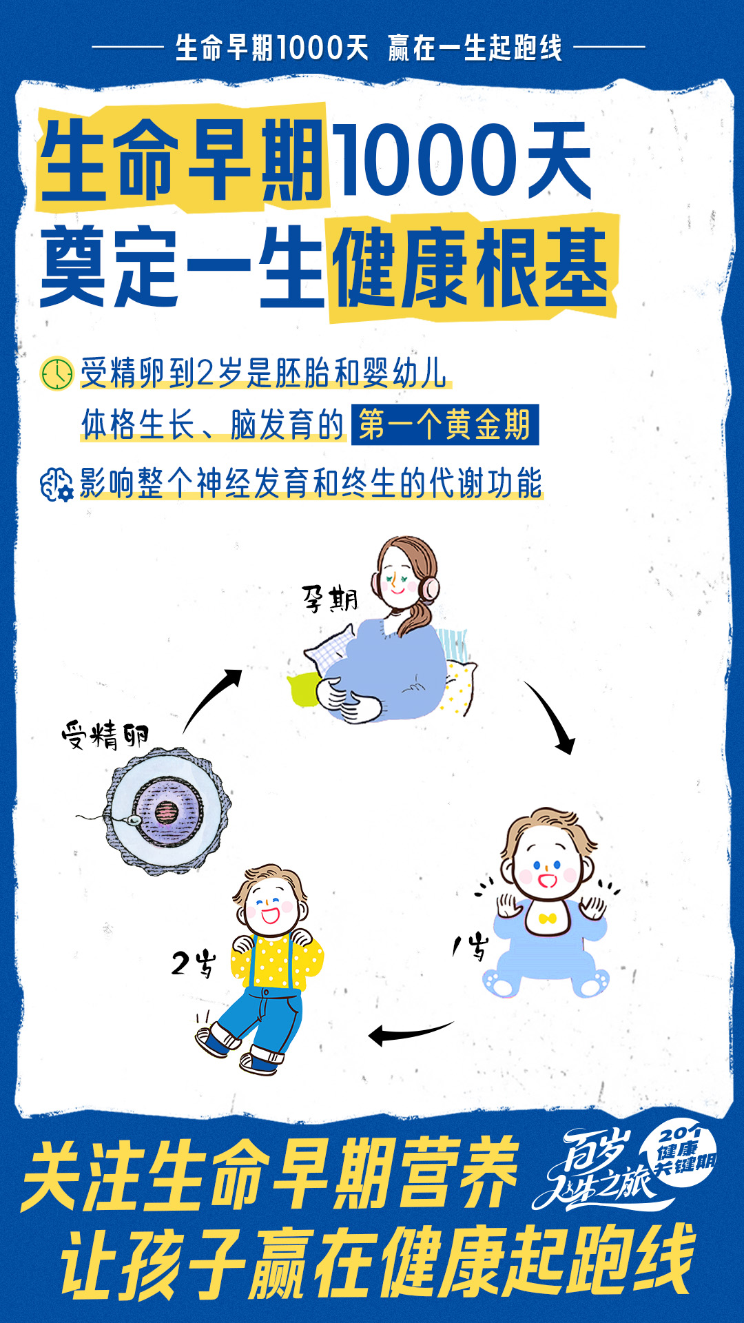 1 生命早期1000天(从受精卵至出生后2岁)是胚胎和婴幼儿体格、脑发育的基础,并且关系到神经的发育以及终生代谢功能的形成。