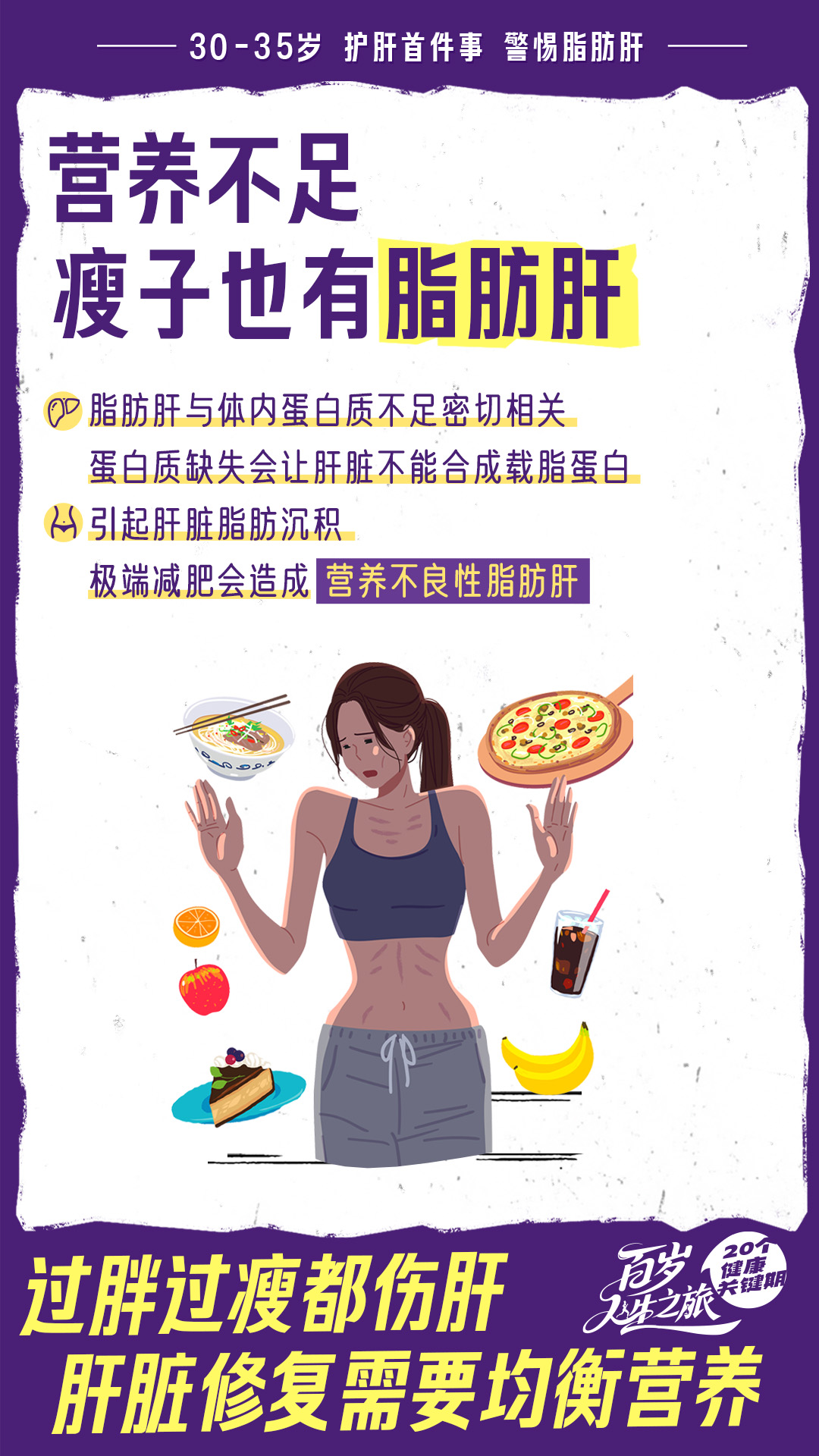5 肥胖虽是脂肪肝主要诱因,但“瘦子”也可能因营养不良、蛋白质缺乏或长期不吃早餐、过度节食、长期饮酒等不健康生活方式患脂肪肝。