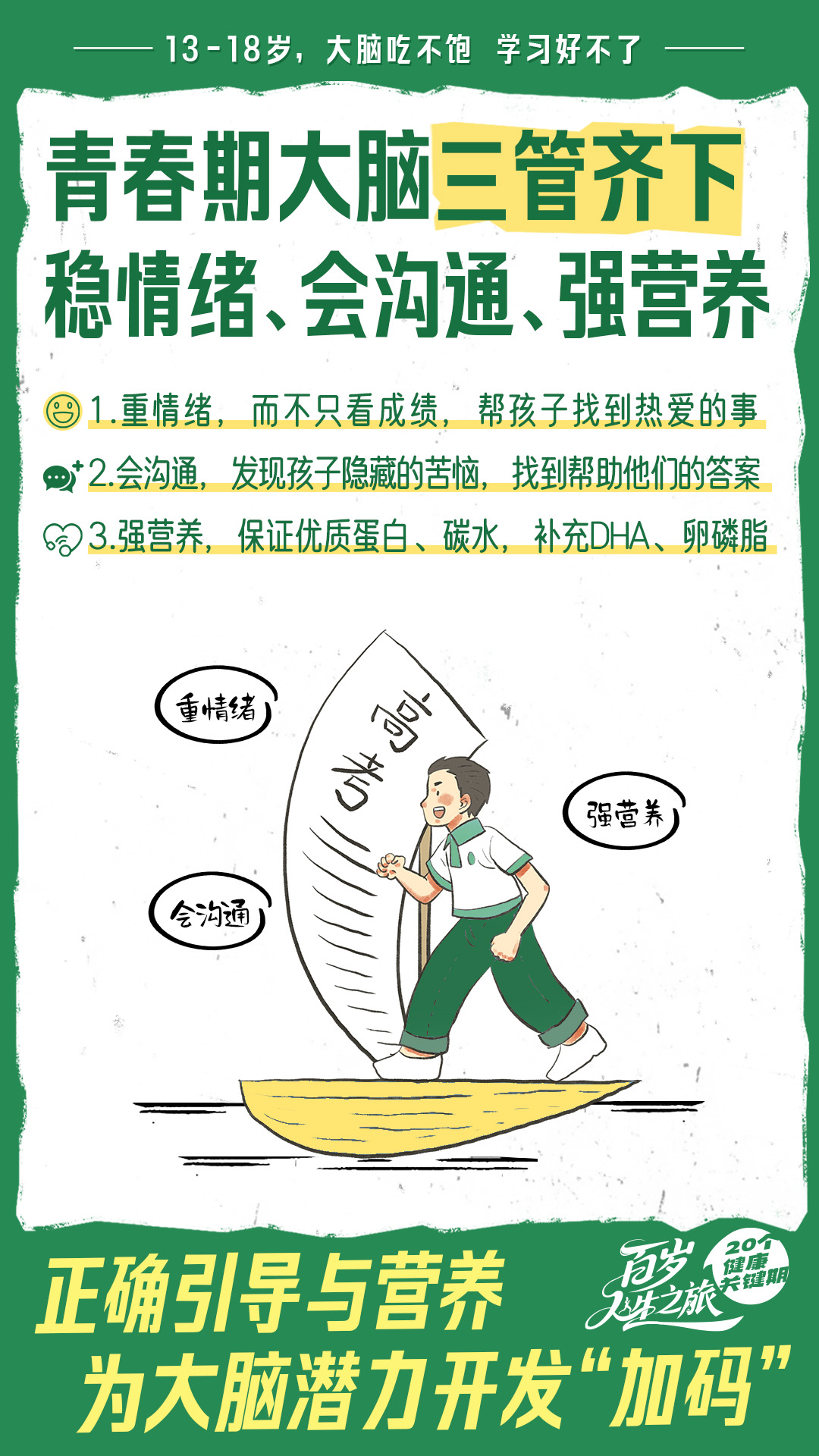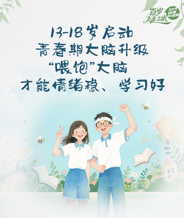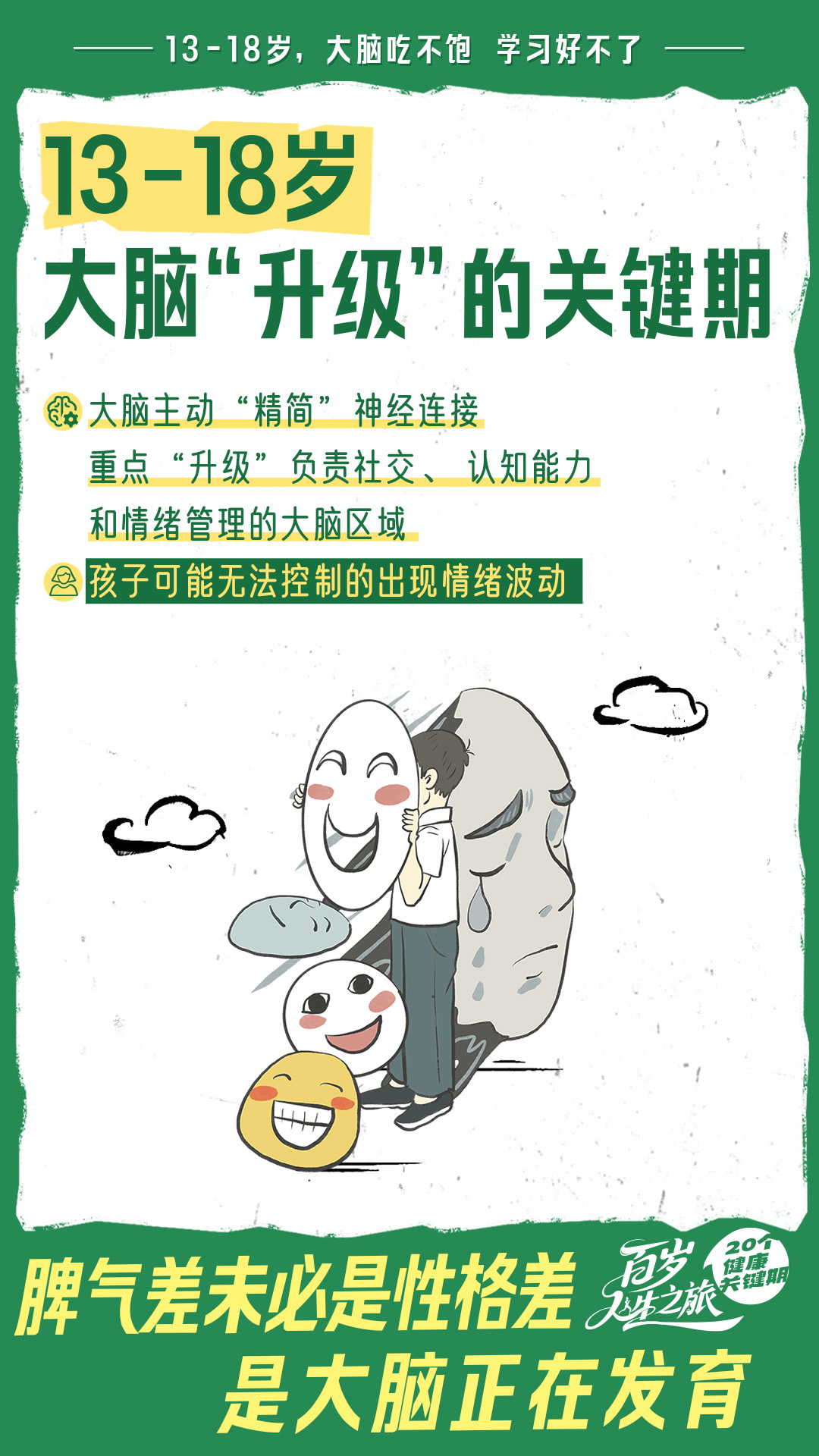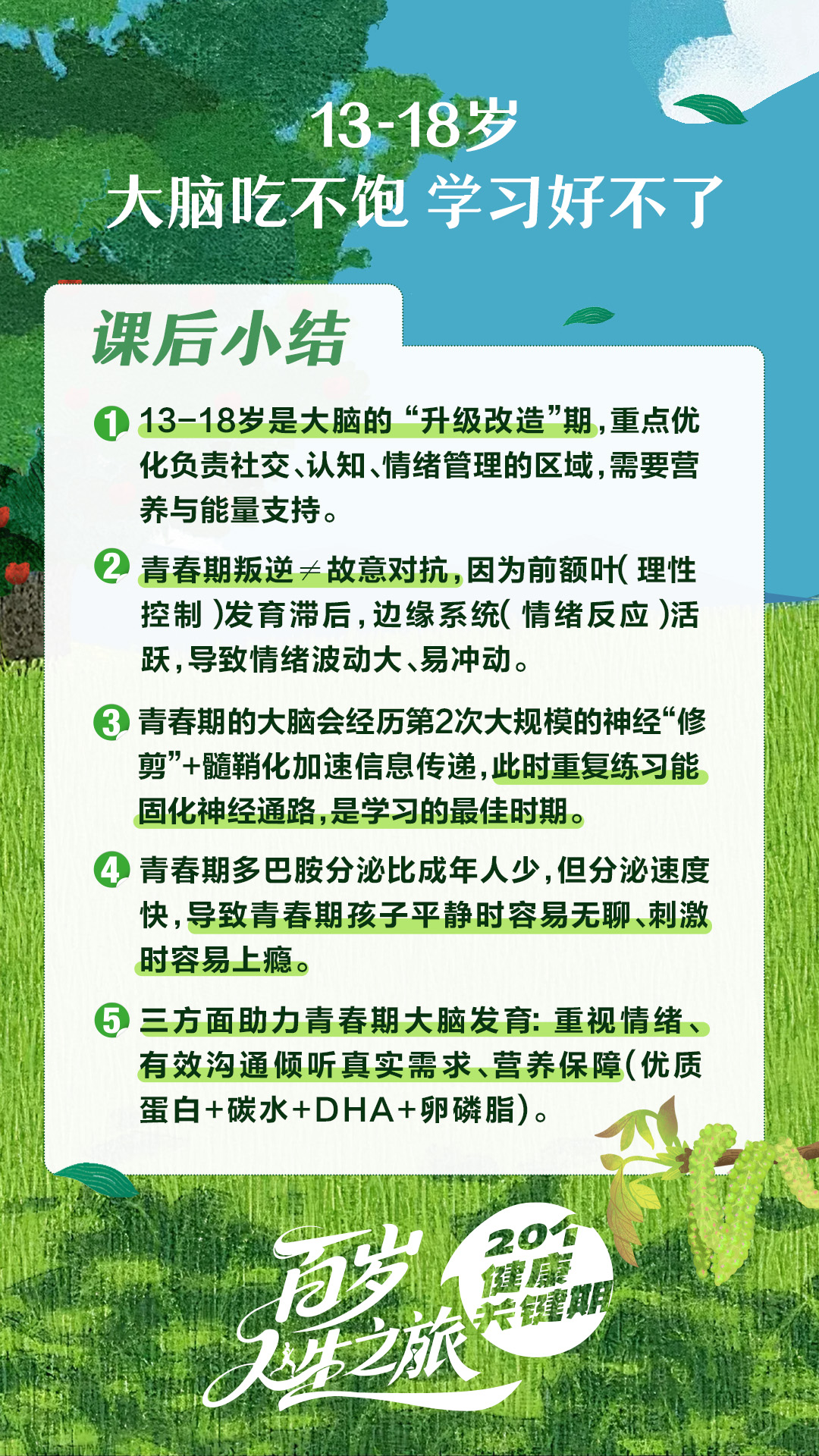 1 13-18岁是大脑的“升级改造”期,重点优化负责社交、认知、情绪管理的区域,需要营养与能量支持。