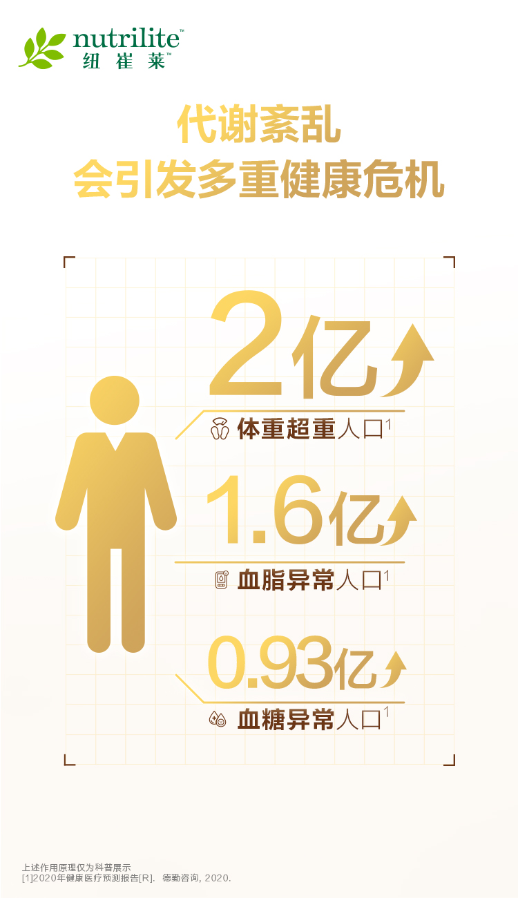 😱代谢紊乱导致慢性健康危机的人口与日俱增🔎调查显示我国超重人口高达2亿⬆血脂异常人口1.6亿,血糖异常也有近1亿人♻而引发这些健康问题的因素潜藏在日常中❗因此了解代谢紊乱的成因,对预防或改善健康问题至关重要