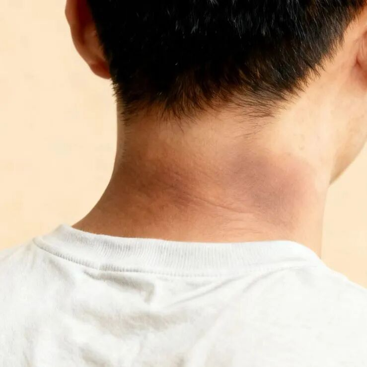 颈部、腋下等皮肤褶皱区域出现灰褐色或黑色天鹅绒样增厚斑块,清洗无法去除。该表现与高胰岛素血症及胰岛素抵抗密切相关,是糖代谢异常的典型皮肤表现之一。