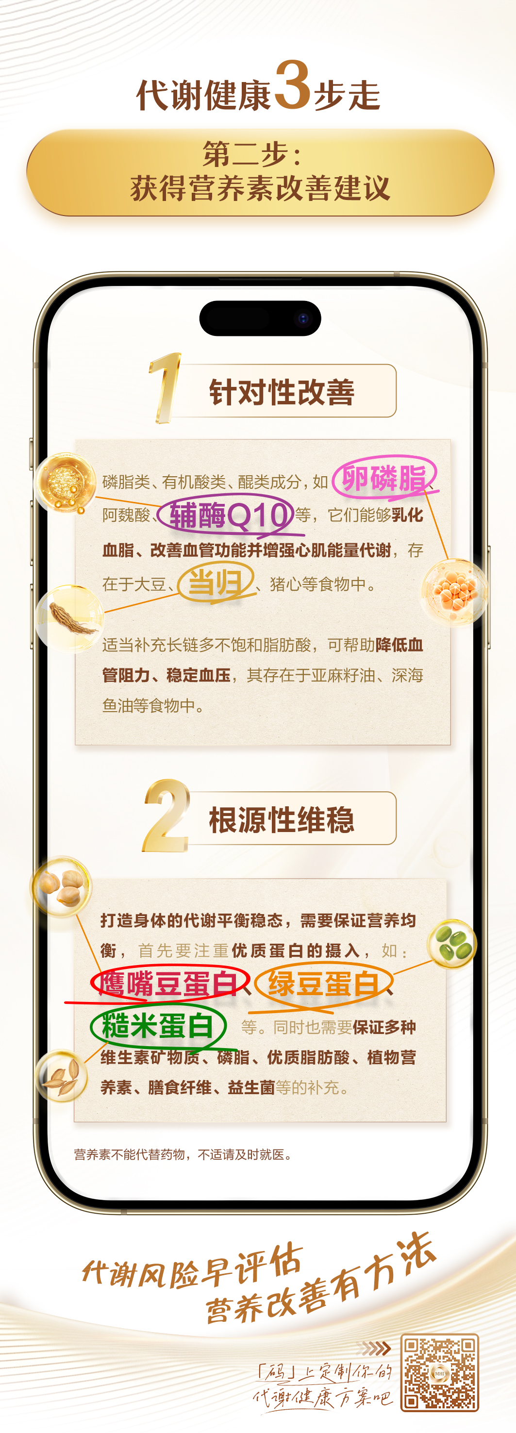 打造身体的代谢平衡稳态,需要保证营养均衡,首先要注重优质蛋白的摄入,如:鹰嘴豆蛋白、绿豆蛋白糙米蛋白等。同时也需要保证多种维生素矿物质、磷脂、优质脂肪酸、植物营养素、膳食纤维、益生菌等的补充。