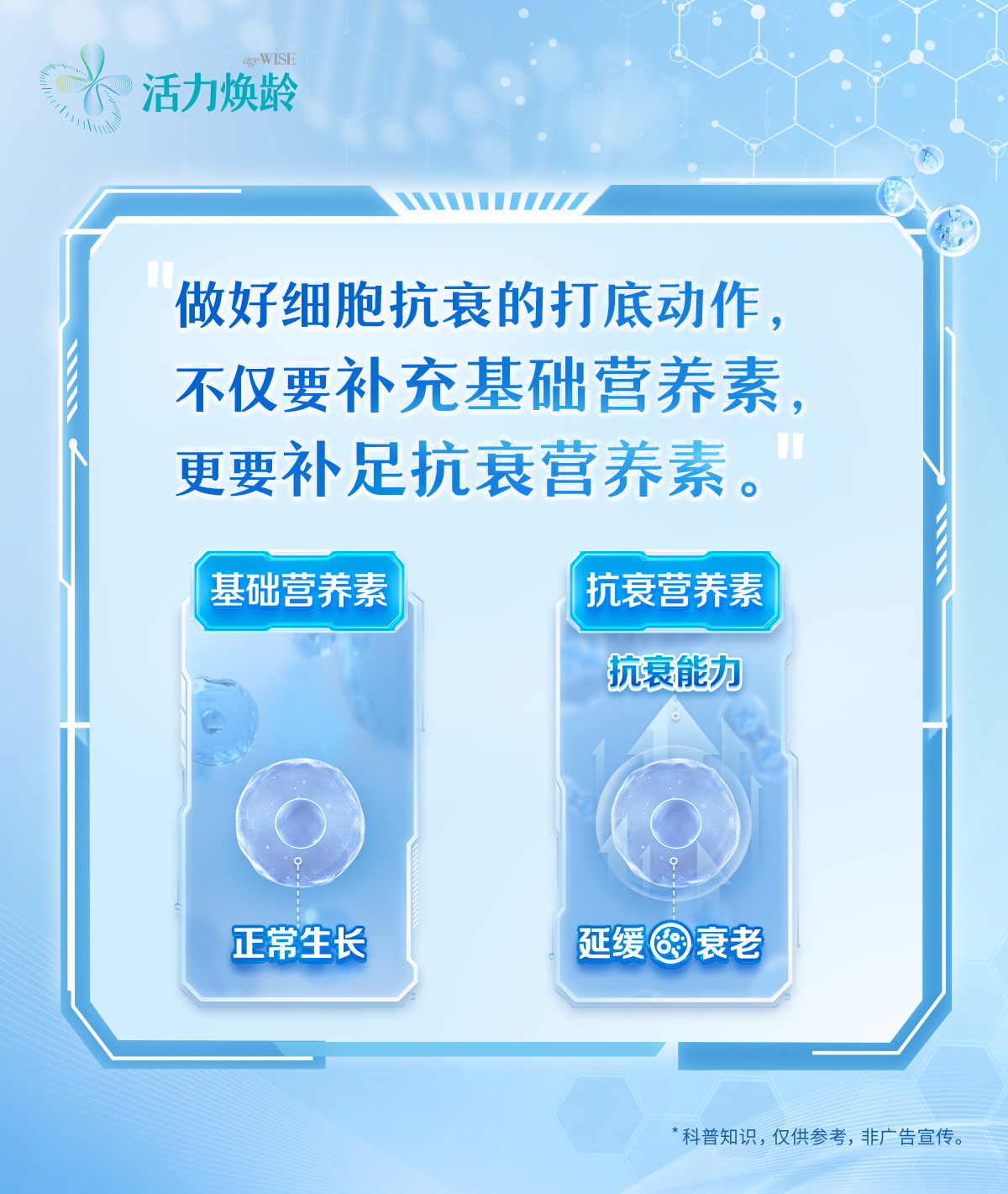 “做好细胞抗衰的打底动作,不仅要补充基础营养素,更要补足抗衰营养素。”