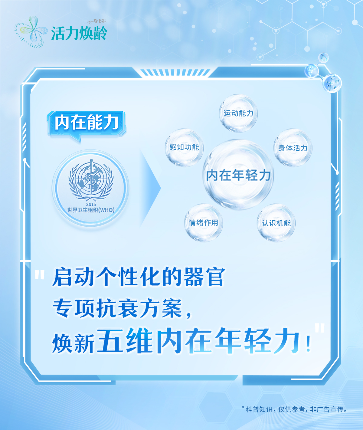 “启动个性化的器官专项抗衰方案,焕新五维内在年轻力!”