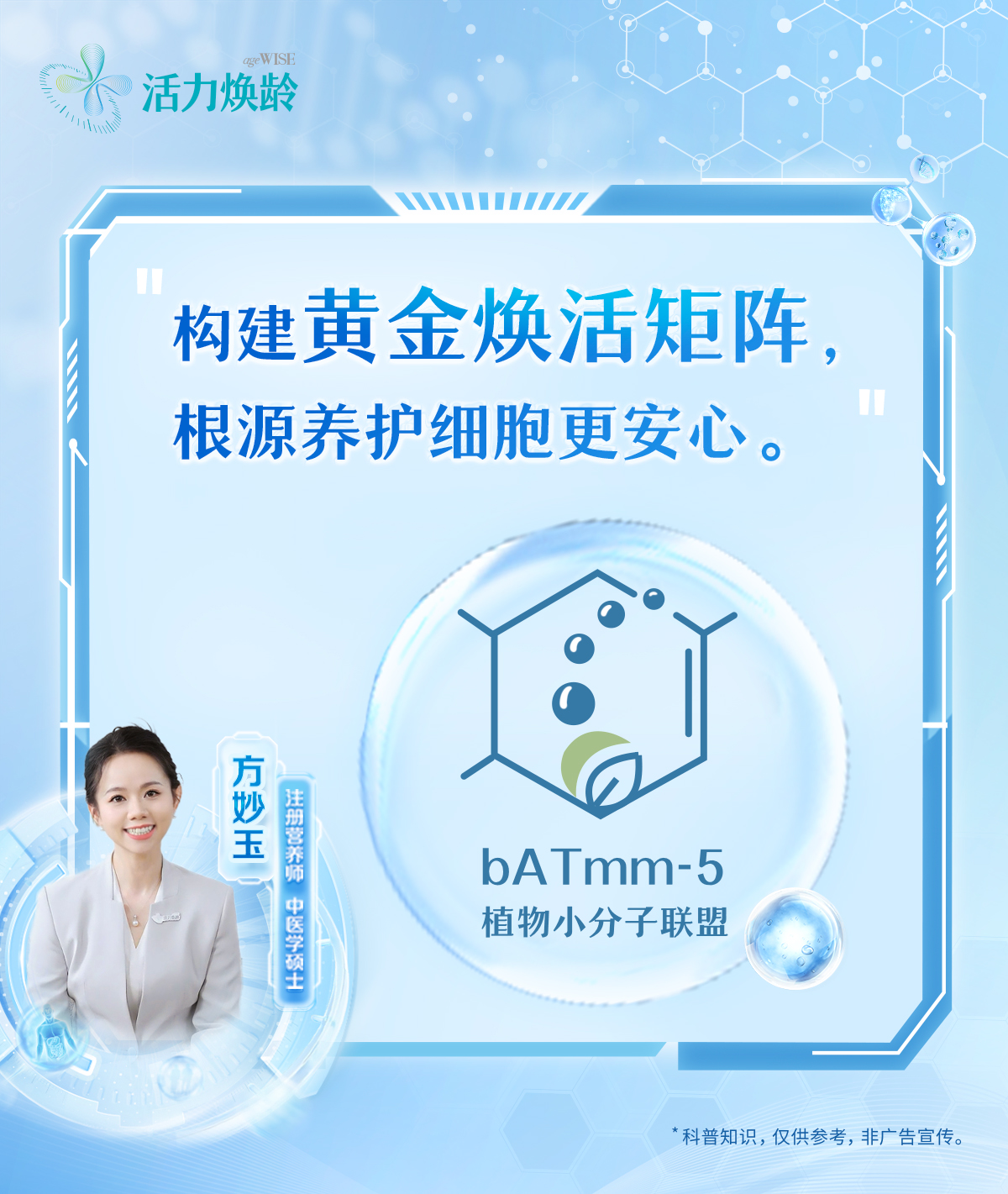“构建黄金焕活矩阵,根源养护细胞更安心。”