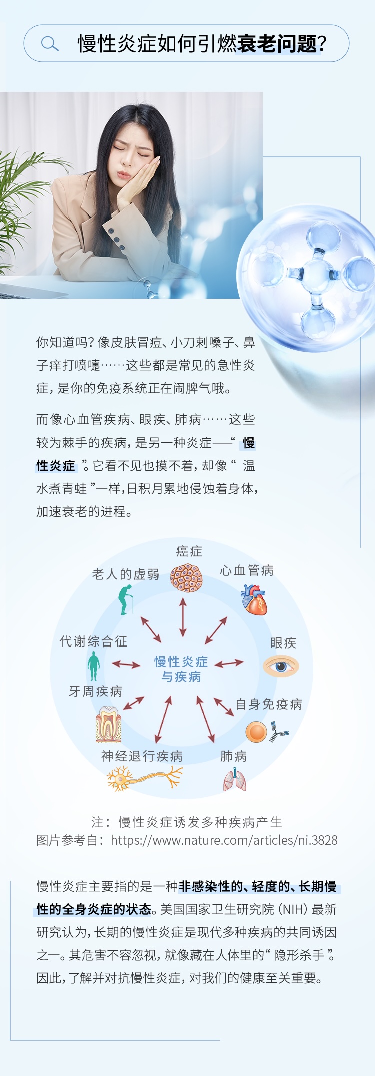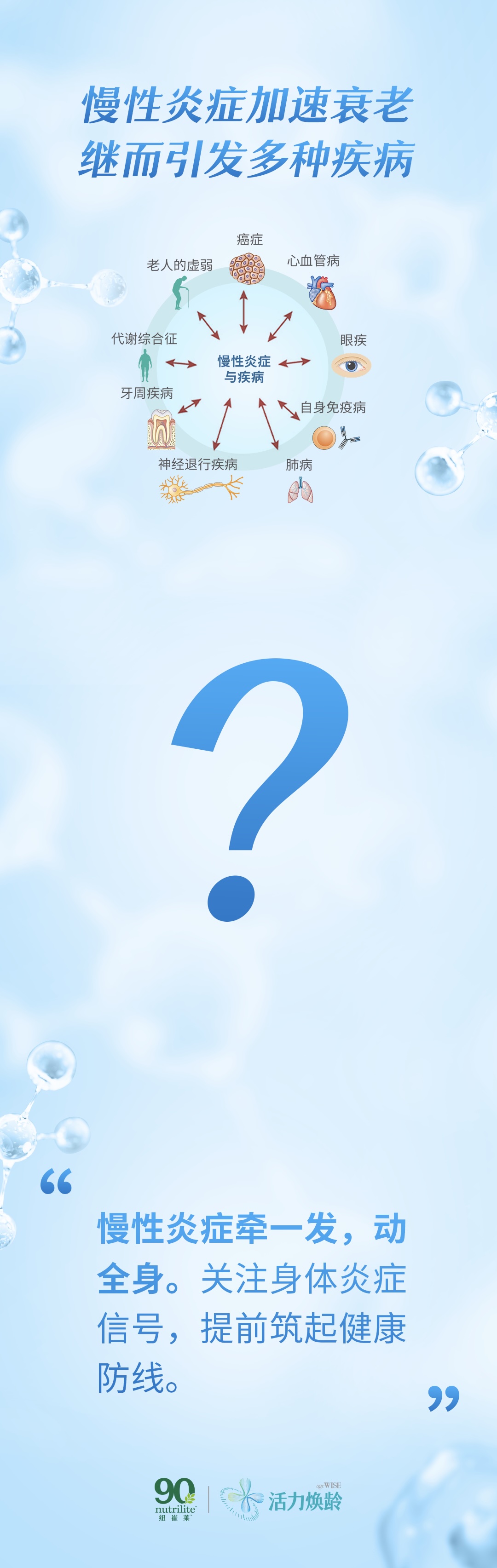 慢性炎症加速衰老继而引发多种疾病慢性炎症牵一发,动全身。关注身体炎症信号,提前筑起健康