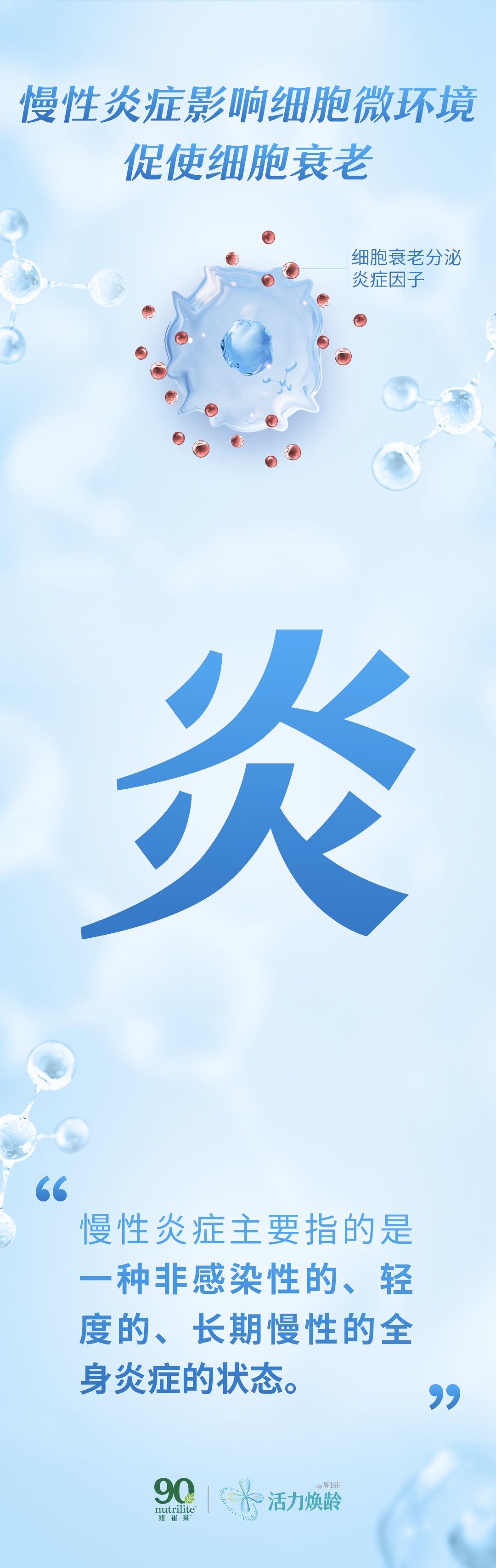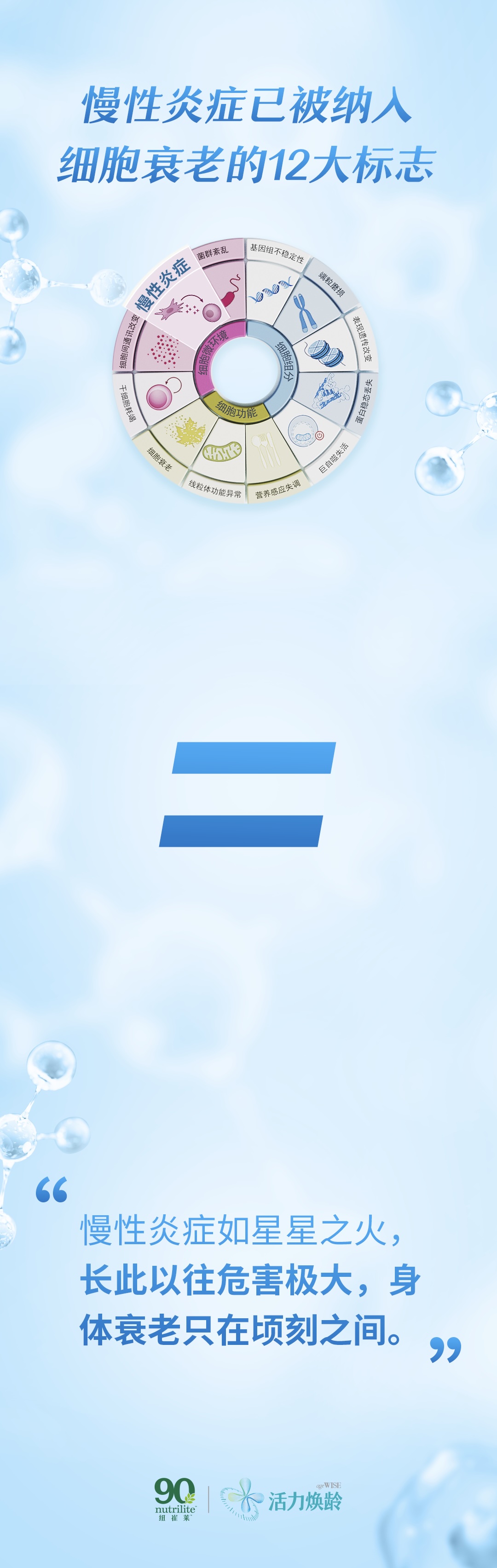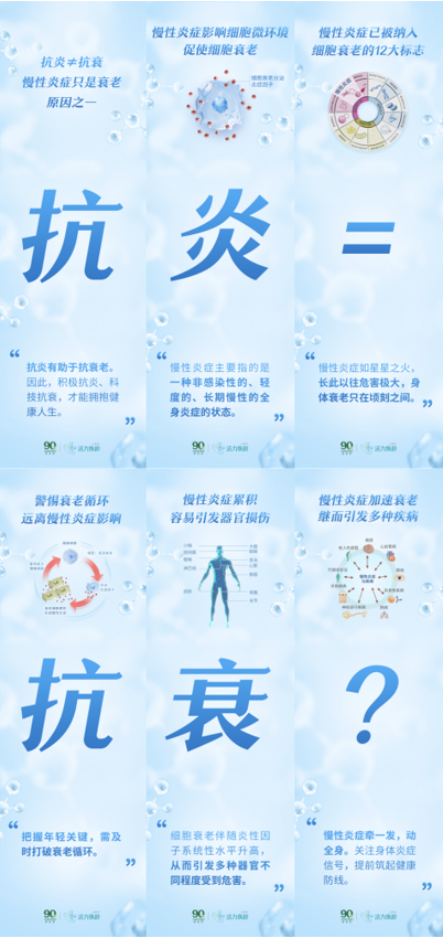 慢性炎症影响细胞微环境促使细胞衰老抗炎有助于抗衰老。因此,积极抗炎、科技抗衰,才能拥抱健康人生。