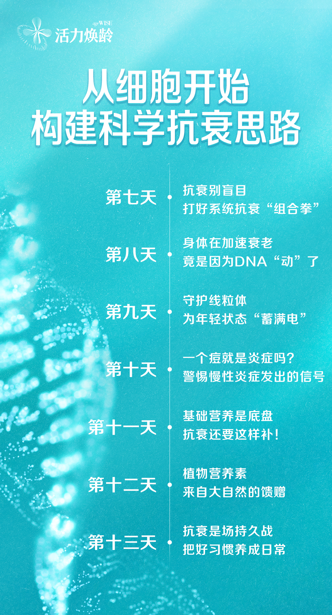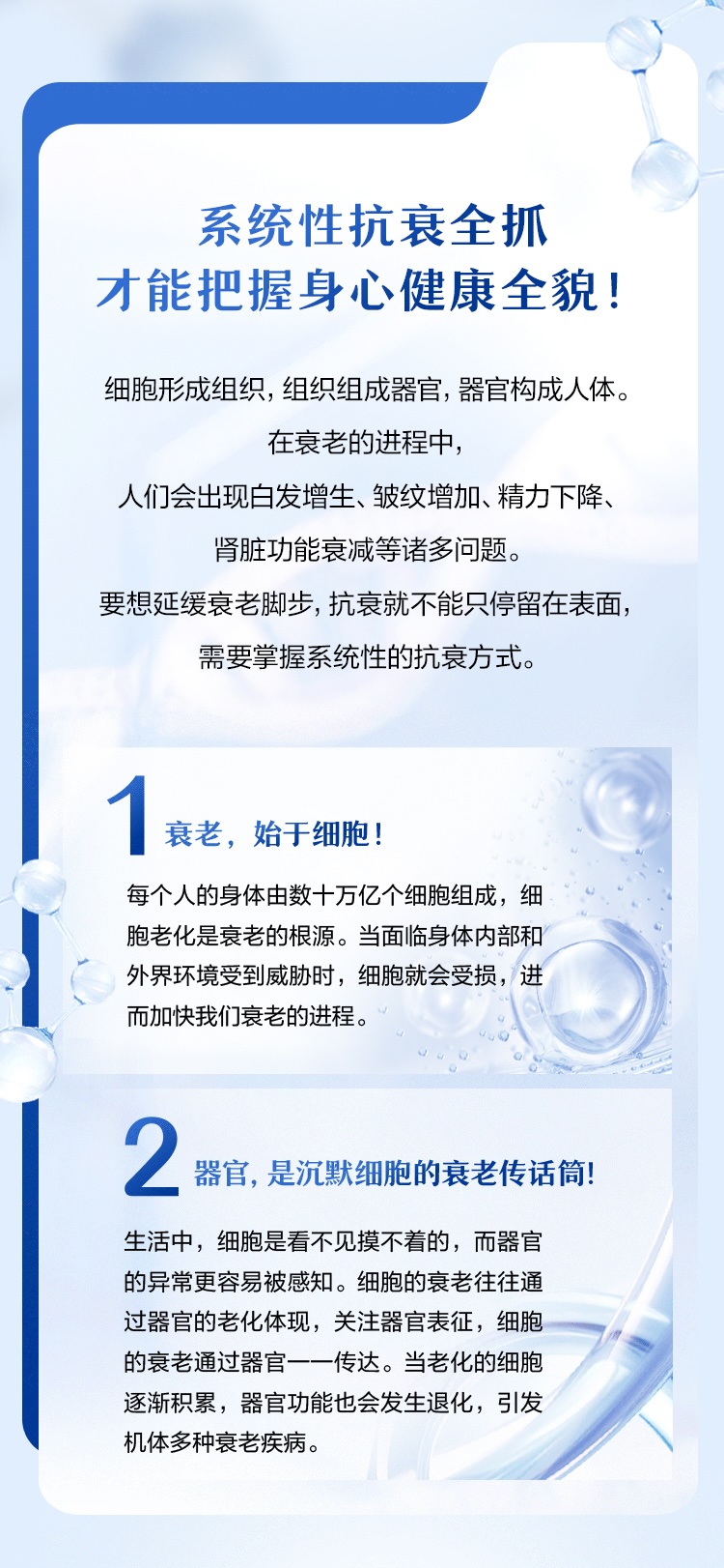 l 为响应延长健康寿命的目标,活力焕龄搭建了“从细胞到器官的全身系统性抗衰”思路,助力每个人的身体年龄都能跟上对生活的美好想象;