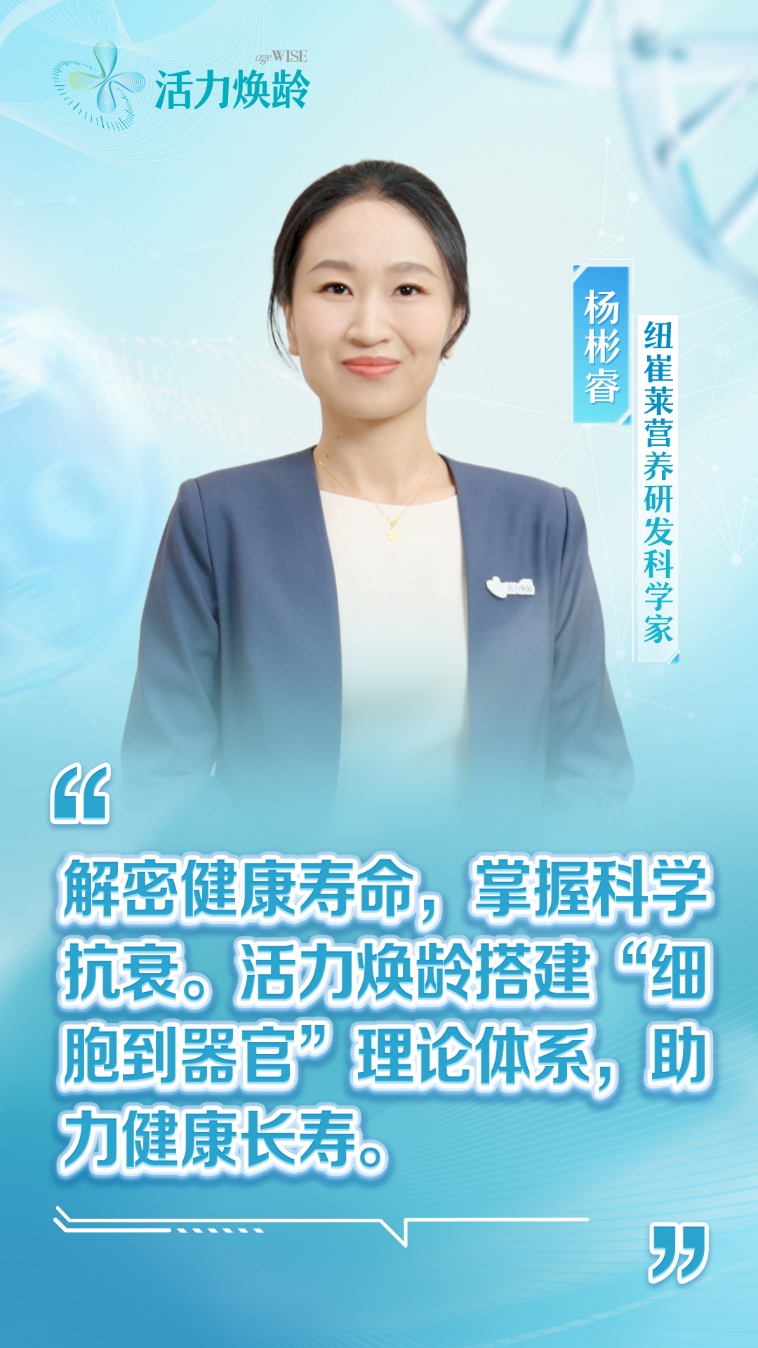 接下来,让我们跟随杨博士一起,了解在提升国民健康寿命这一国家战略背景下,解读安利在抗衰领域的前沿布局以及如何通过系统抗衰为你的健康保驾护航。