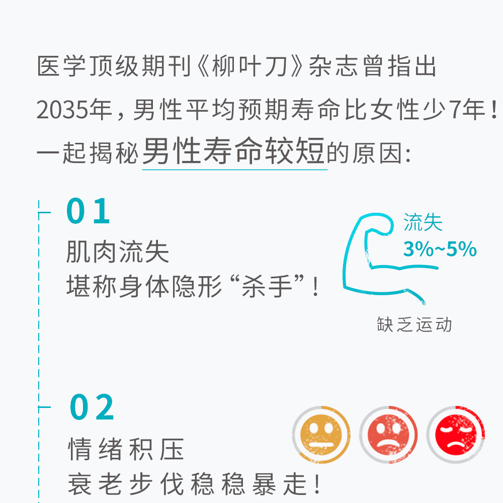 l 预计到2035年,男性平均寿命比女性短7年,需重点关注肌肉流失、情绪管理等问题;