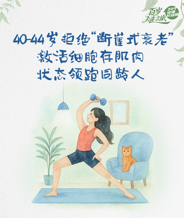 在当今社会,尤其是女性,对抗衰老的关注度日益增长。梳妆台上常常可见抗衰老面霜、精华等产品。然而,很多人忽视了一个核心问题:皮肤的衰老只是表象,其根源实际上在于细胞的衰老。2025年,国际顶级期刊《Cell》发表了一篇关于衰老的权威综述,指出衰老有14个标志。这14个标志可以归纳为三个维度:一是细胞组成的变化,如基因组不稳定和端粒磨损导致细胞不健康;二是细胞功能受损,如线粒体功能异常。线粒体是细胞的能量工厂,一旦其功能失效,细胞将因缺乏能量来源而死亡;三是细胞微环境的变化,如慢性炎症。细胞深知"近朱者赤,近墨者黑"的道理,良好的环境能使其保持健康,反之则可能导致衰老。因此,抗衰老不能仅仅停留在表面。许多人对血腥玛丽的故事耳熟能详,传说玛丽为了追求青春永驻,不惜以少女的鲜血沐浴。这听起来确实令人毛骨悚然。然而,更加令人恐惧的是,很多人并未意识到衰老对身体健康的破坏远不止于容颜。我们身体将面临第一个断崖式衰老期。其最显著的特点是代谢能力下降、大脑功能衰退以及肌肉量的减少。我们将重点探讨肌肉量减少的问题,而前两者将在代谢与大脑的节点中进行讨论。肌肉与新陈代谢之间存在着紧密的双向联系。首先,作为代谢器官,肌肉占基础代谢的40%,因此肌肉的流失会导致基础代谢率降低,影响身体能量消耗和整体代谢健康。随着基础代谢率的降低,身体会倾向于分解肌肉以获取能量,特别是在蛋白质摄入不足的情况下,这就形成了代谢越低肌肉越少的恶性循环。我们的肌肉量在40岁时达到峰值,这个时期也是保存肌肉的最后黄金期,在这个时间去存够量,才能抵御得住未来每年3%到5%的自然减少。就像我们存够了钱,财富啊,自由了一样,如果不进行管理,不仅肌肉量会逐年减少,60岁之后更是会加速流失,到了70岁,人体的肌肉质量会下降40%。有些人可能会认为,肌肉减少只是体重减轻而已,其实并非如此。研究发现,肌肉组织减少10%可能导致免疫功能下降,使老年人更容易受到感染。当肌肉组织减少20%,老人会明显感到衰弱无力,增加跌倒风险,并且伤口愈合速度减缓。肌肉组织若减少30%,将导致老人无法自理,甚至出现连续卧床引发压疮肺炎的情况。当肌肉组织减少40%时,死亡风险显著升高。因此,肌肉减少并不仅仅是体重减轻那么简单,其影响是全身性的。尽管衰老是不可避免的,但我们完全可以延缓这一过程。那些50岁仍保持30岁状态的人,其秘诀可能在于从40岁就开始进行科学干预。你的第二个青春,或许就隐藏在当下每一个健康的选择中。为了延缓衰老、保持认知能力和肌肉健康,首先需要解决细胞的营养供给问题。很多人误以为只要肚子不饿,细胞也就不会饿。然而,由于膳食结构不合理、烹饪方式不当以及现代人不良的饮食习惯,我们摄入的营养素正在逐渐减少。数据显示,中国有3亿人正遭受隐性饥饿,即虽然肚子饱了,但细胞并未得到足够的营养。这种状态会严重影响我们的抗衰老进程,因此必须保证营养均衡。在均衡营养的基础上,可以补充维生素E和植物性营养素以抗氧化、清除衰老细胞、抗炎、抗糖。此外,通过实施间歇性禁食,可以适度增加空腹感,从而提高细胞自噬水平,实现细胞层面的抗衰老。什么是细胞自噬呢?简单来说,就是细胞自己清除受损的蛋白质和衰老的细胞器,从而延缓细胞衰老的能力。间歇性禁食不仅能提高胰岛素敏感性,改善血糖和血脂代谢,减少炎症反应,这些都有助于共同延缓细胞衰老。最后,通过运动来增强肌肉力量和功能,这一点至关重要,比如做好抗阻训练和有氧运动等。当您40岁时,或许正忙于为家人抵挡风风雨雨,但请别忘了,您也是需要被守护的那道风景。谁不渴望在50岁时仍能轻松抱起孙辈登楼,60岁能与老友来场说走就走的旅游,哪怕七老八十依然能够生活自理,不必依赖他人照顾。抗衰并非仅仅关乎容颜,更是为了在老年时仍能拥有生活的自主权。衰老过程也并非单行道,在关键节点做好准备,完全能将断崖式衰老变为平缓的健康长廊,让未来的每个十年都依旧充满活力。
