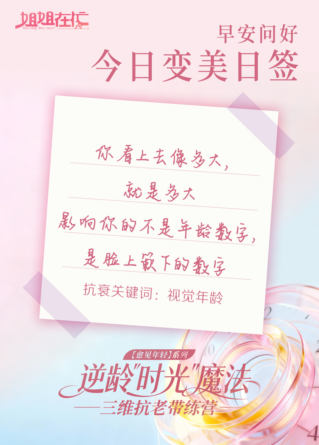 抗衰是场温柔的 “时光魔法”,没有一蹴而就的奇迹,却有日复一日的惊喜。坚持用雅姿三维御时系列守护肌肤,解锁更多逆龄秘籍,咱们一起在时光中完成 “魔法逆袭”✨