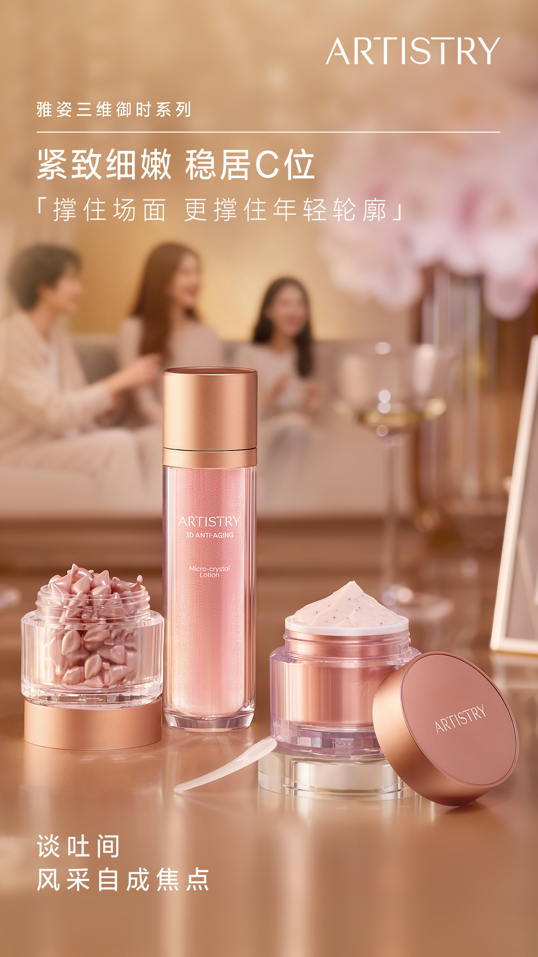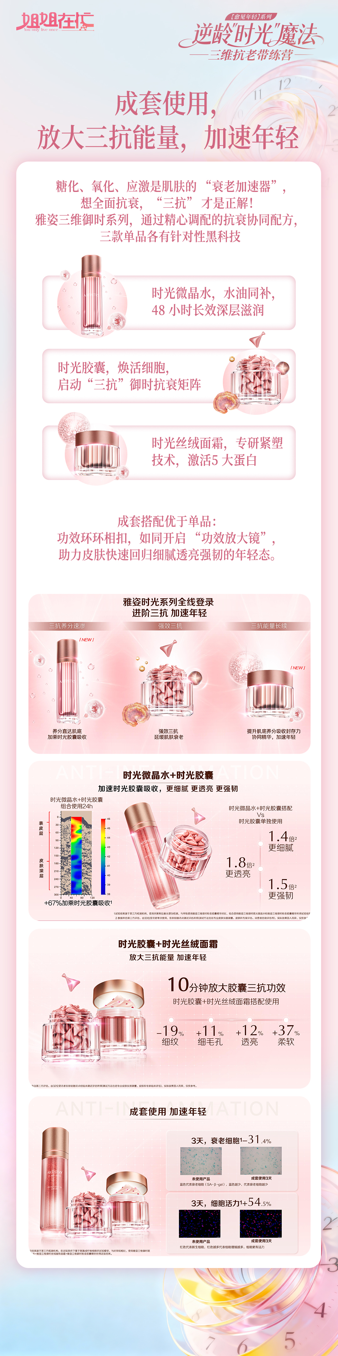雅姿三维御时系列,也就是咱们的“时光”系宝藏组合,帮助姐妹们在✅ 社交聚会✅ 加班熬夜✅ 换季时刻✅ 居家护肤,都能守护年轻状态,让你的肌肤美出 C 位。