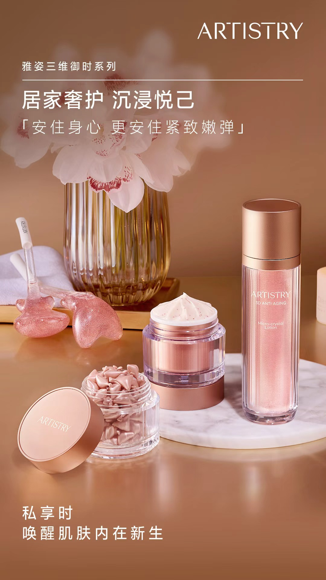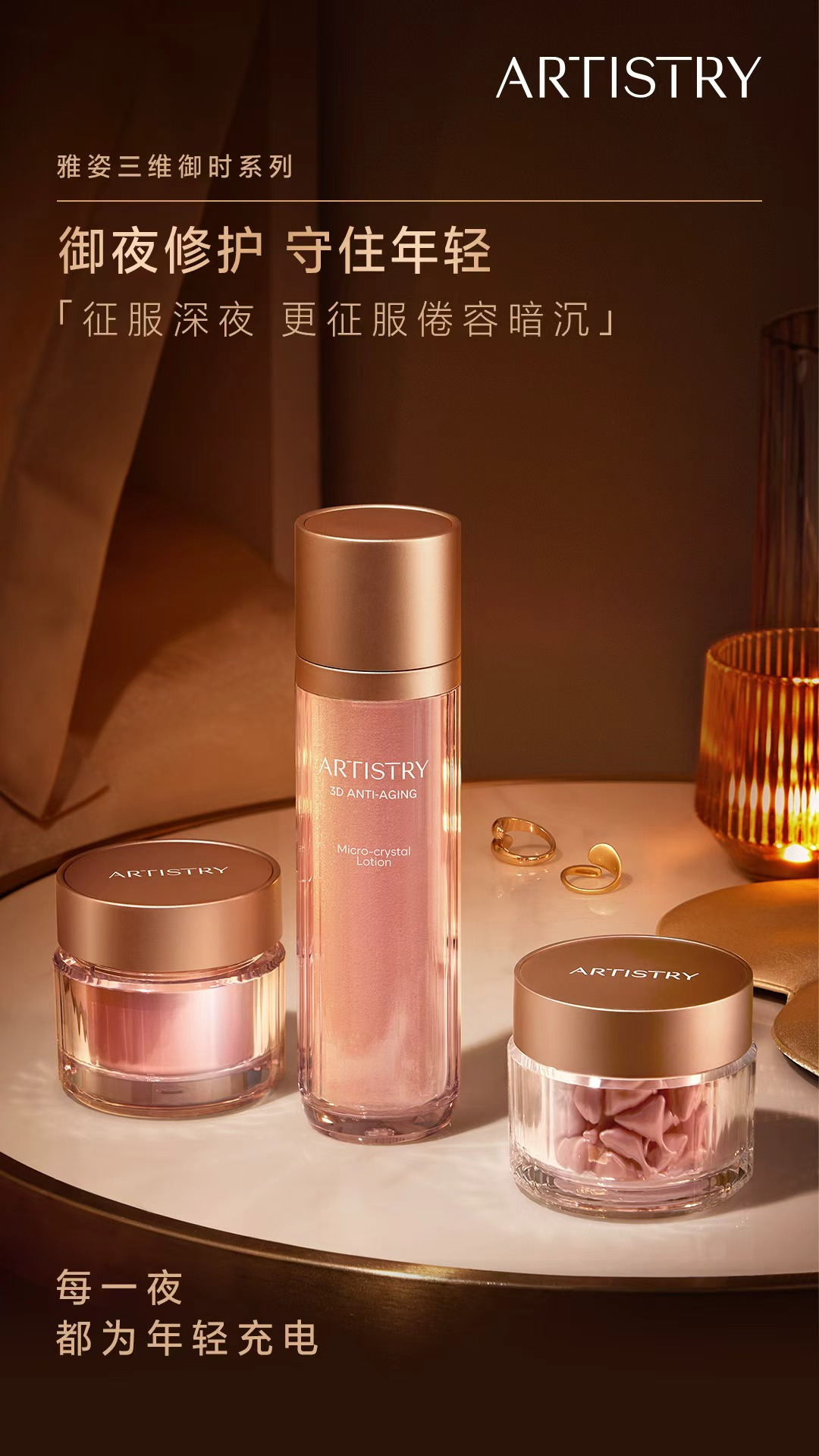 姐妹们,告别一天的琐碎,惬意的夜间美肤时光来咯✨快把雅姿时光微晶水、雅姿时光胶囊、雅姿时光丝绒面霜准备好,一起打卡「进阶三抗年轻操」,给皮肤来一场深度抗衰修护吧~